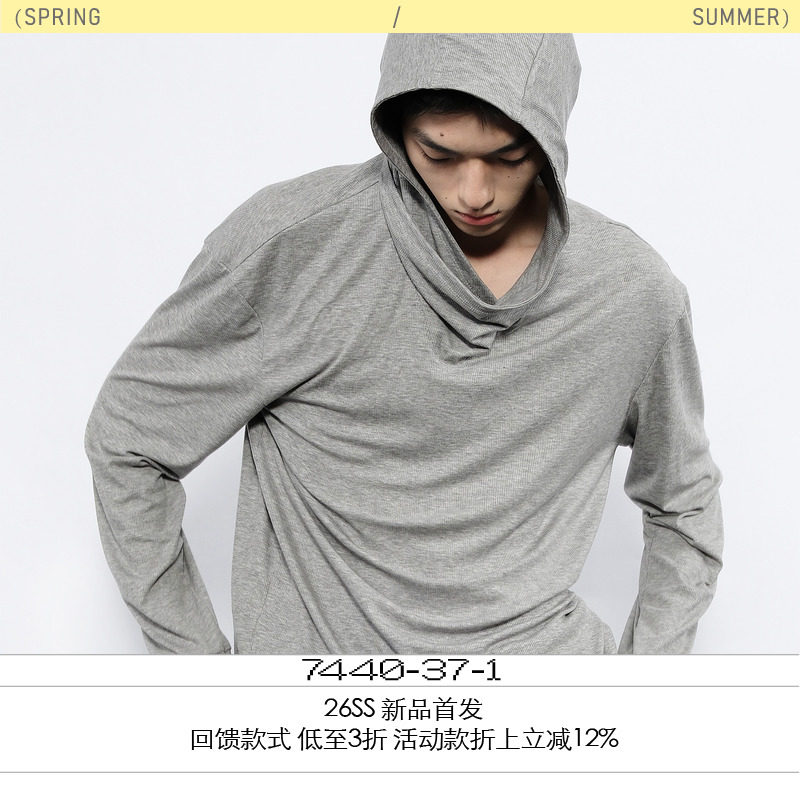 淘宝7440 37 1 莱赛尔天丝绕领交叠连帽长袖T恤衫