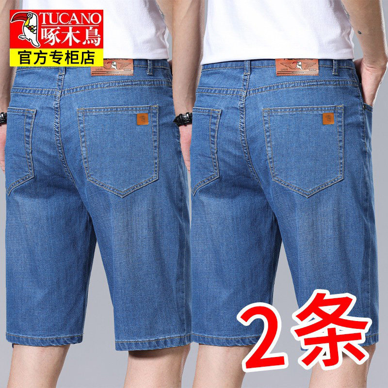 啄木鸟夏季超薄牛仔短裤男直筒马裤男士宽松中裤休闲五分裤男裤子