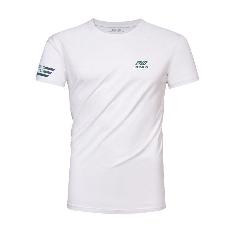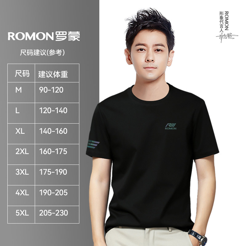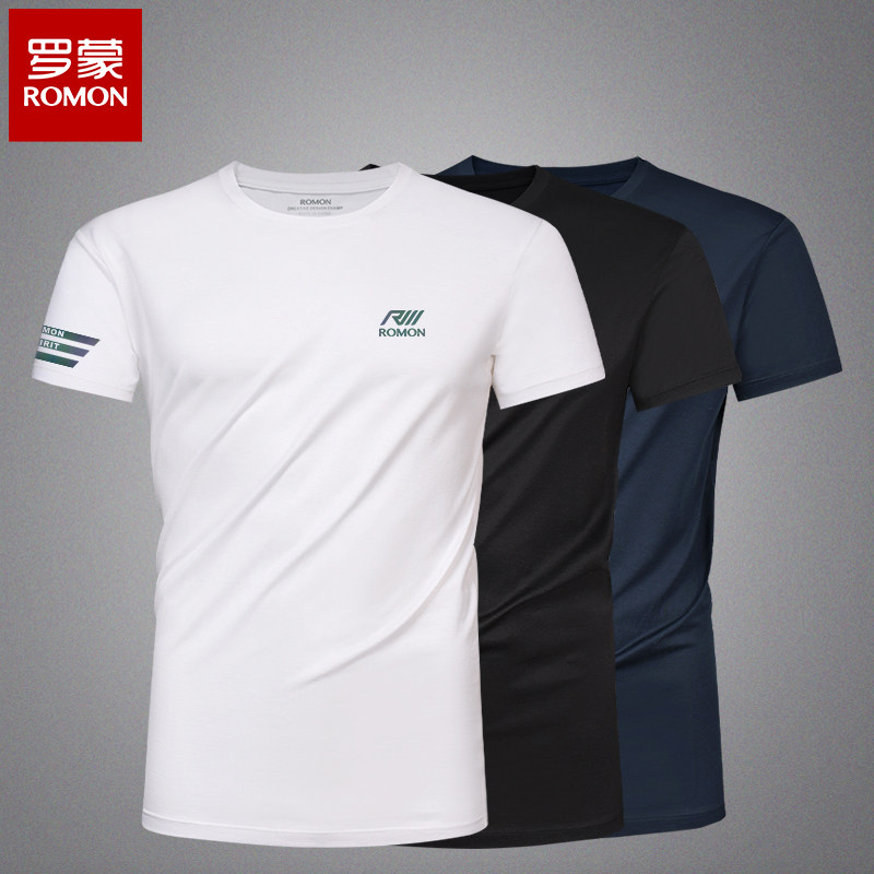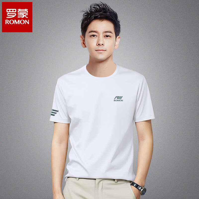 淘宝罗蒙品牌圆领短袖t恤男设计感小众夏季潮牌简约修身半袖男士衣服