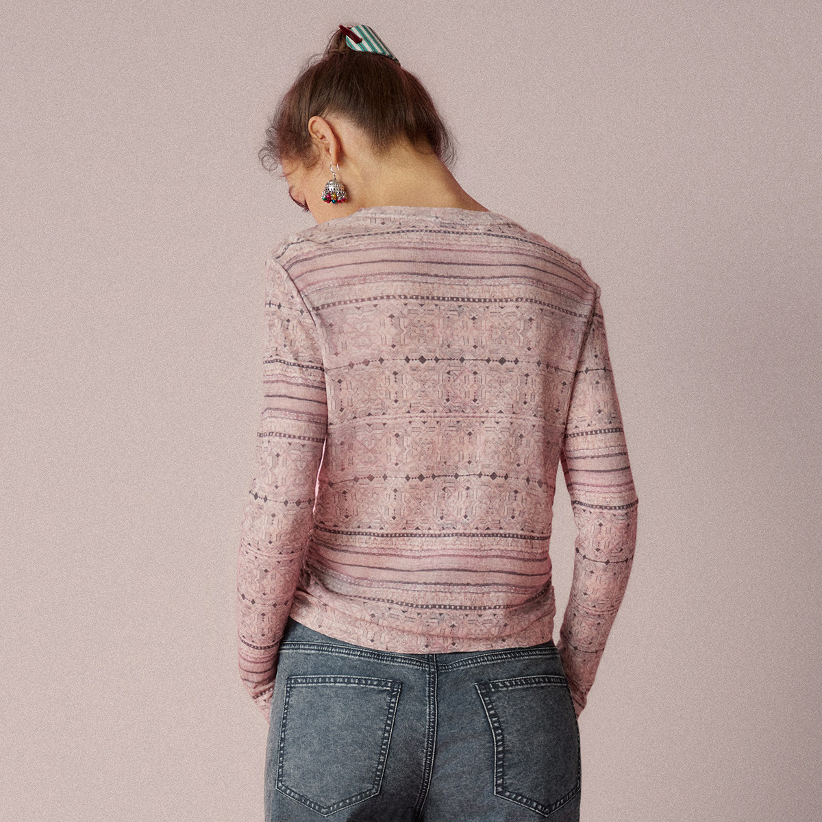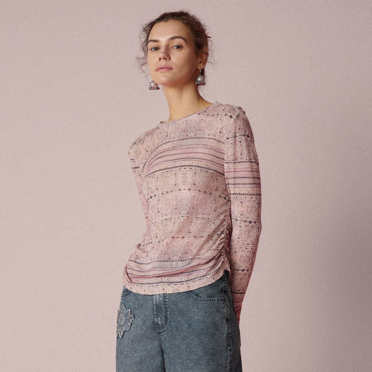 --------------------- HUI卉博物馆藏品纹样精纺绵羊毛收腰褶皱圆领针织衫2026春季新款 【原售价】1499元 【现售价】1349元 【推荐理由】