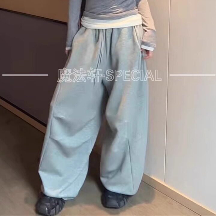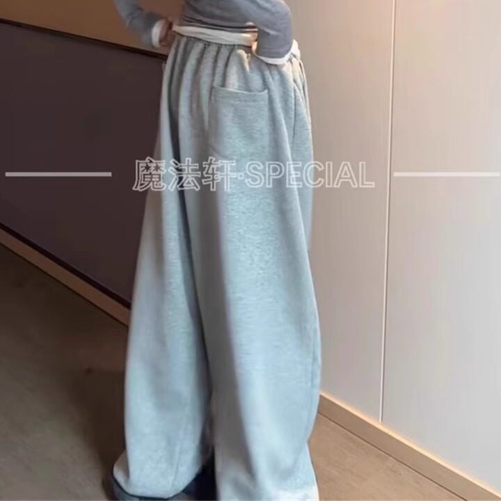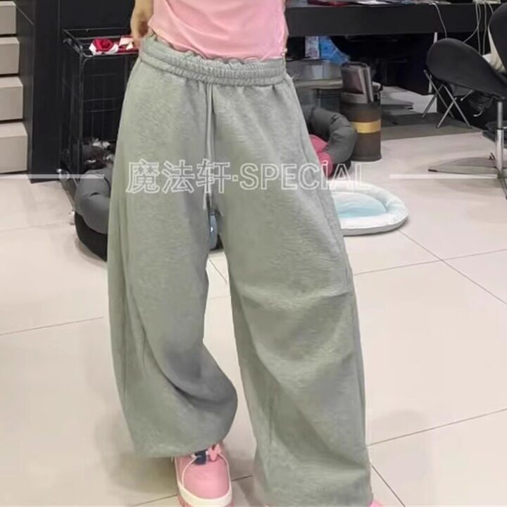 淘宝【现货】灰色卫裤休闲裤女2025新款秋冬高腰宽松阔腿收脚裤长裤Q