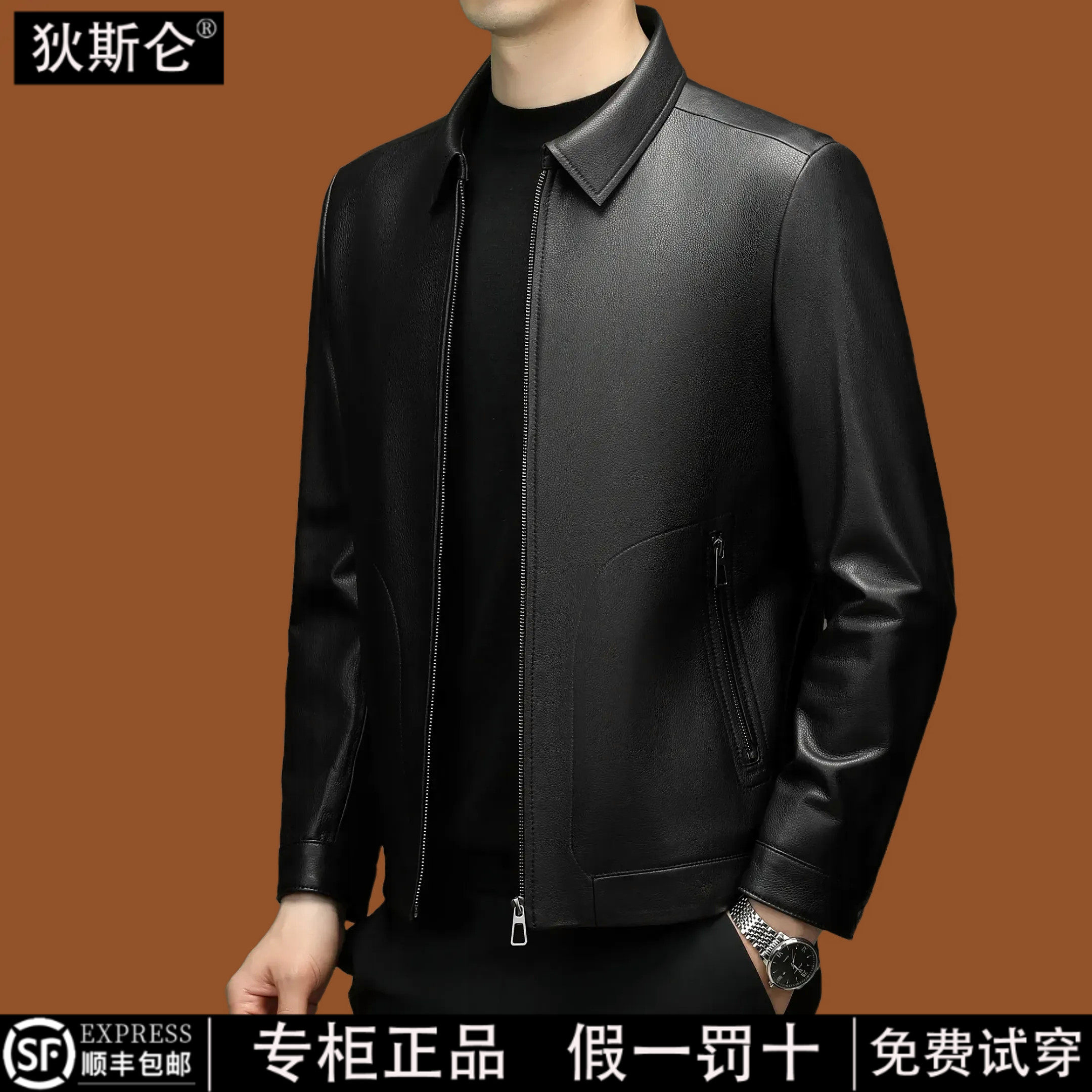 狄斯仑真皮皮衣男2026春秋季新款商务休闲翻领绵羊皮夹克高端外套
