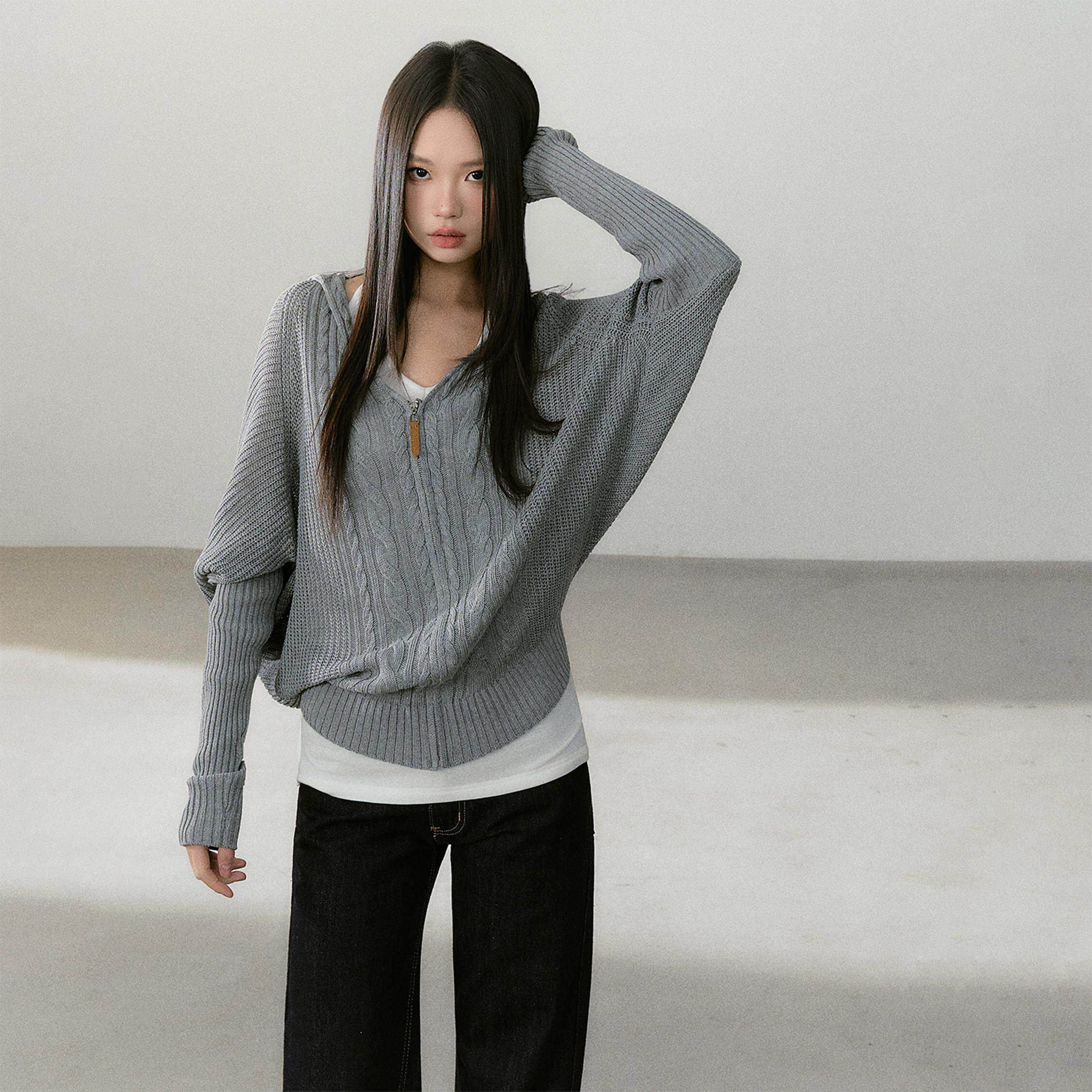 CyNi【疏影捕光】天丝亚麻立体编织蝙蝠袖针织开衫外套透气舒适