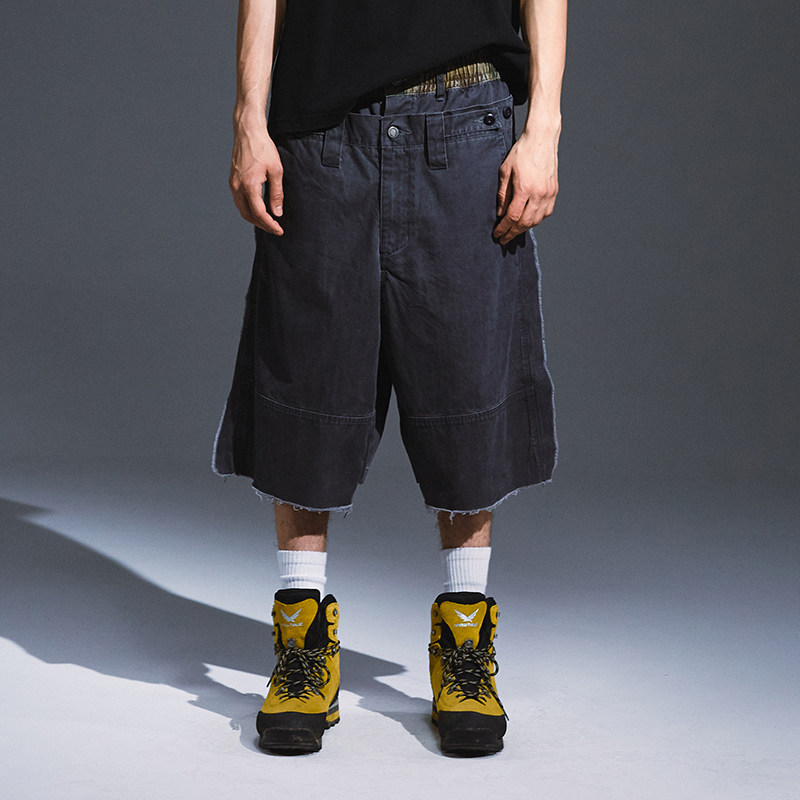 Remedy夏季美式街头潮牌工装短裤子国潮毛边宽松直筒休闲七分裤男