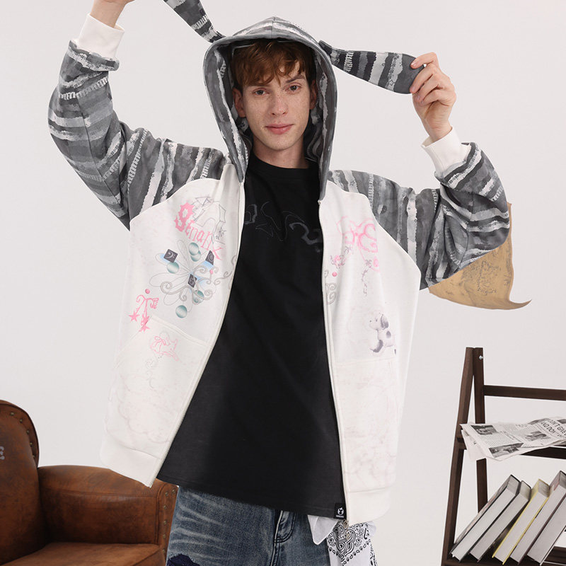 --------------------- 童禹坤同款GENANX闪电潮牌开衫卫衣可爱兔耳朵帽子情侣夹克外套 【原售价】299元 【现售价】263元 【推荐理由】