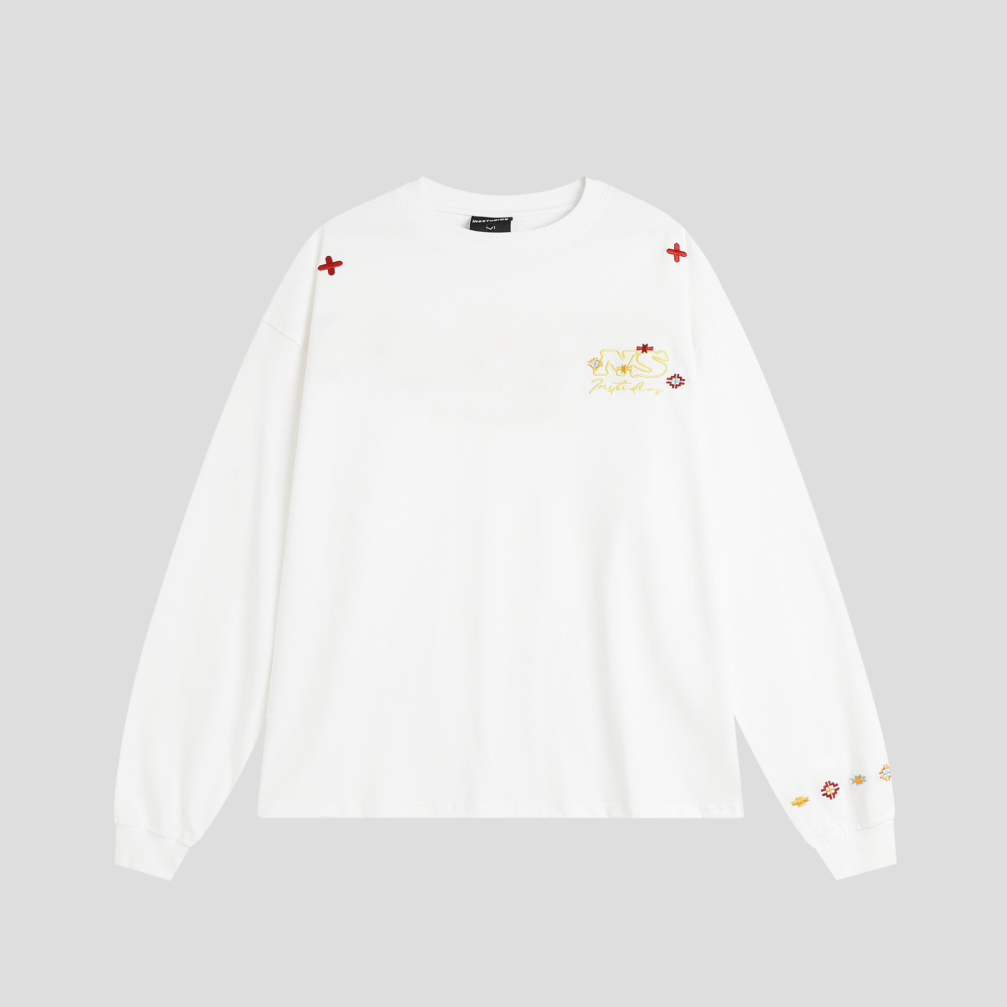 --------------------- 【INSKR】国潮情侣美式「几何LOGO刺绣长袖」宽松打底衫上衣T恤男 【原售价】176元 【现售价】77.4元 【推荐理由】