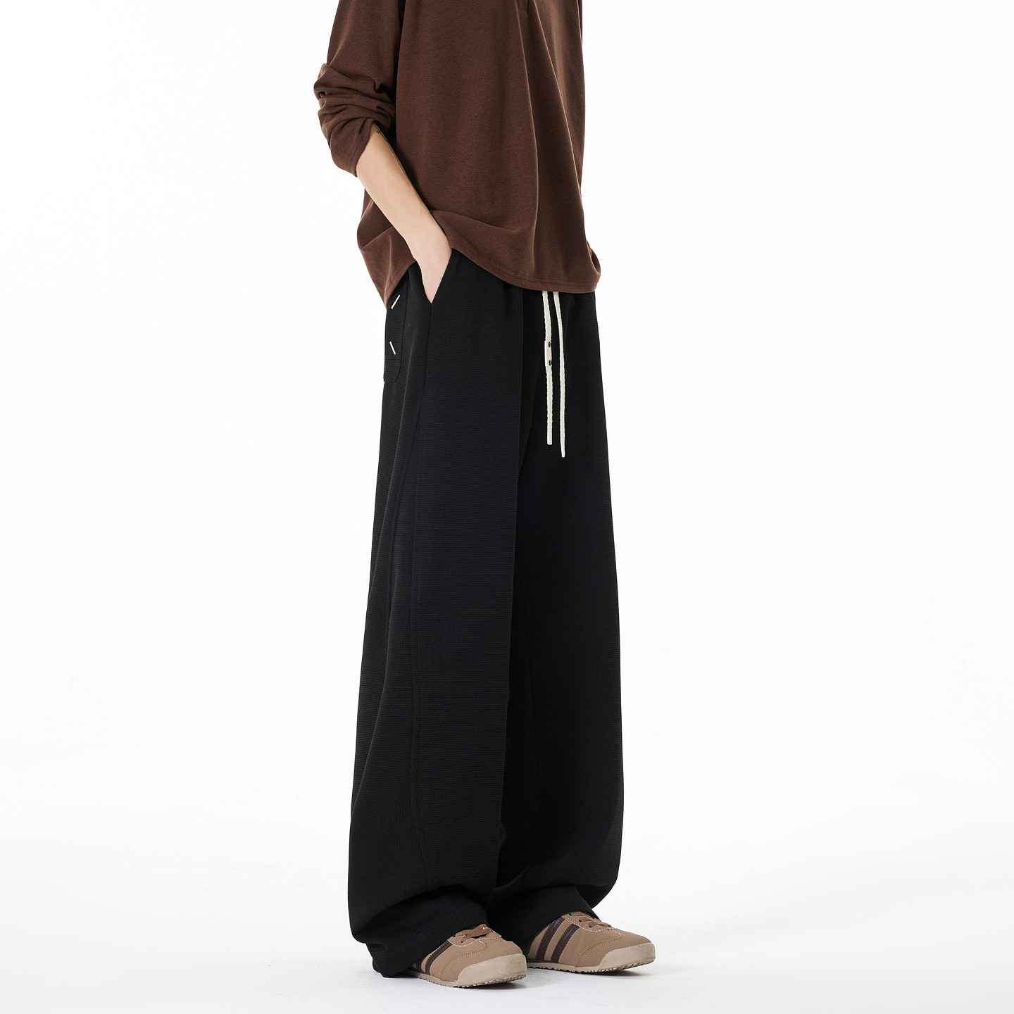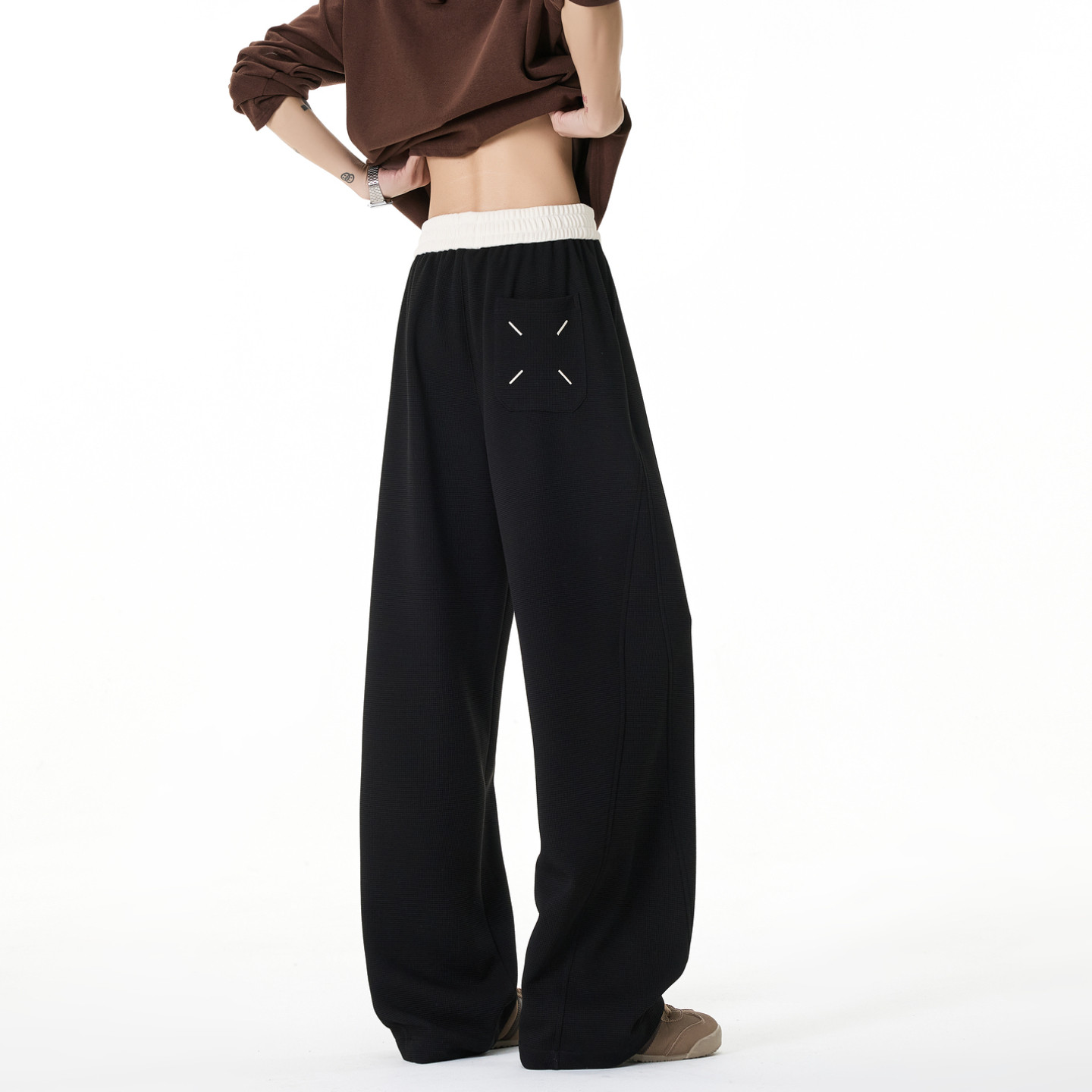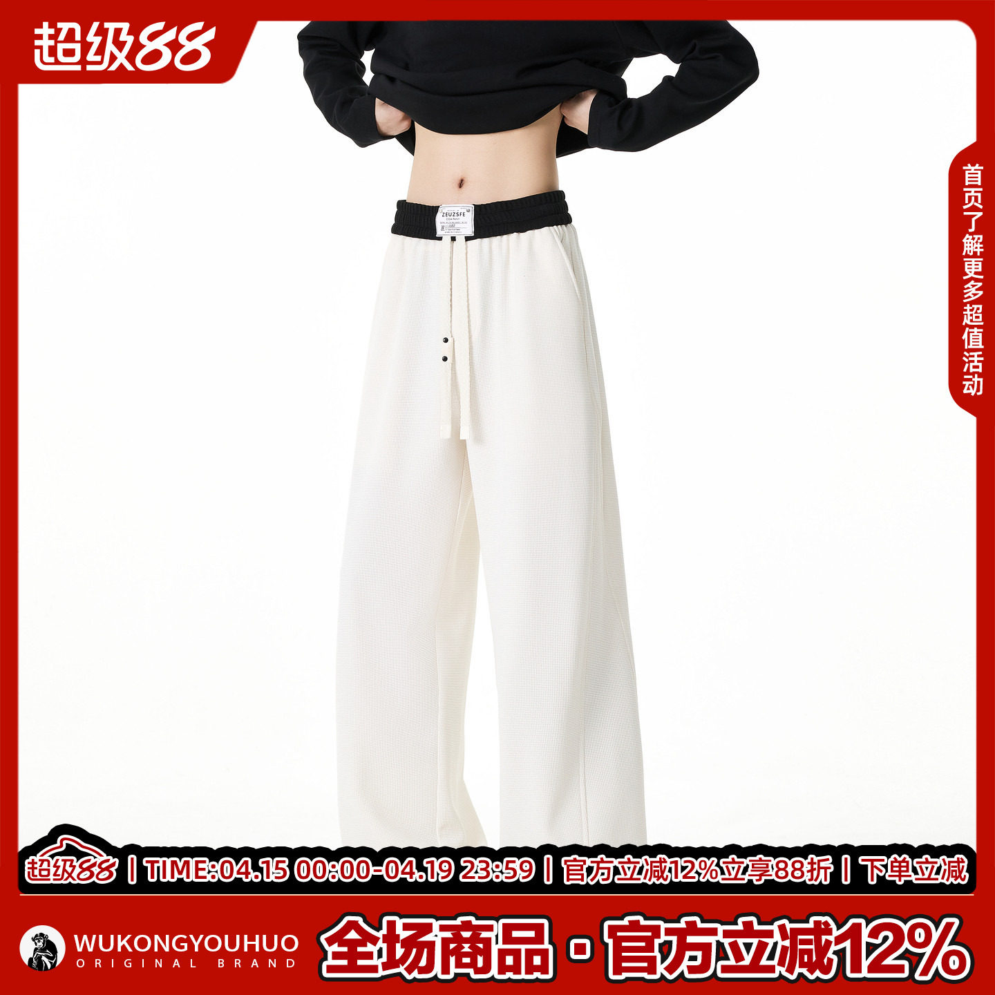 --------------------- 悟空有货复古撞色拼接抽绳松紧休闲裤男潮牌宽松百搭阔腿运动卫裤 【原售价】136元 【现售价】59.8元 【推荐理由】