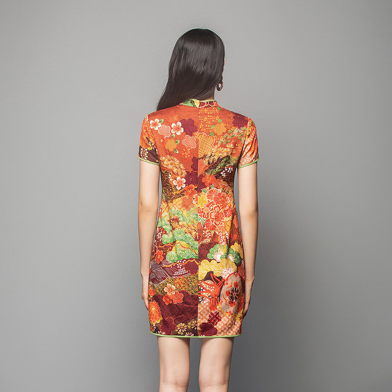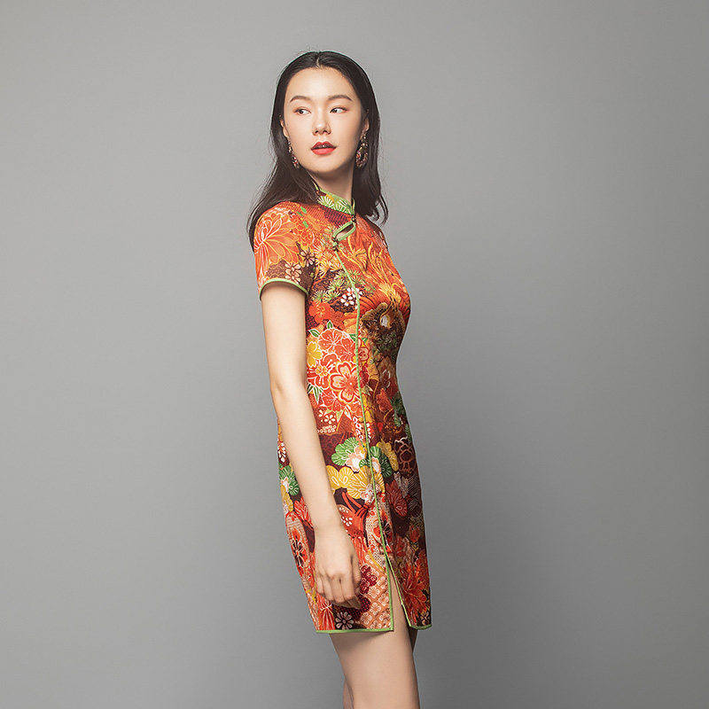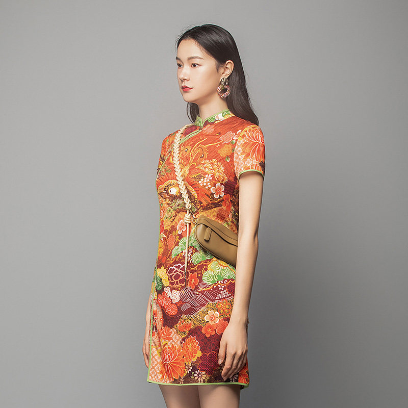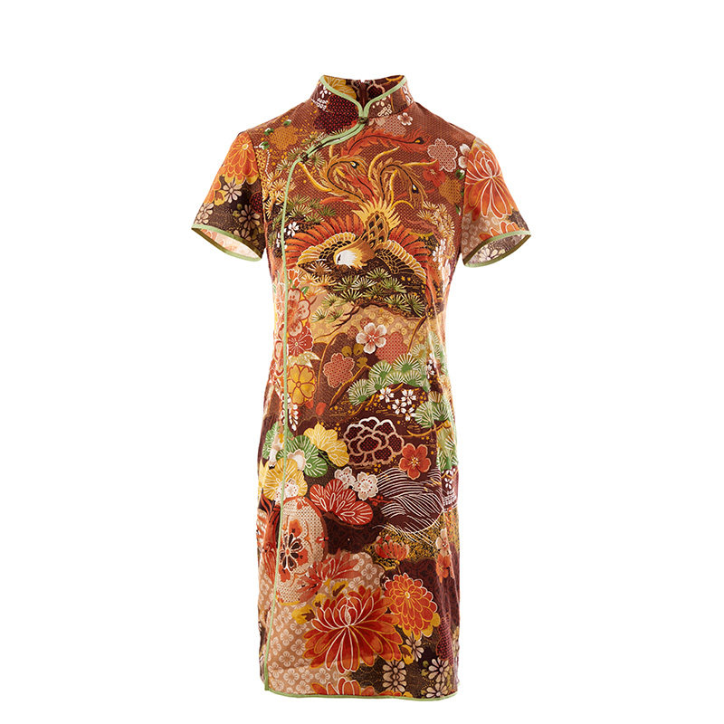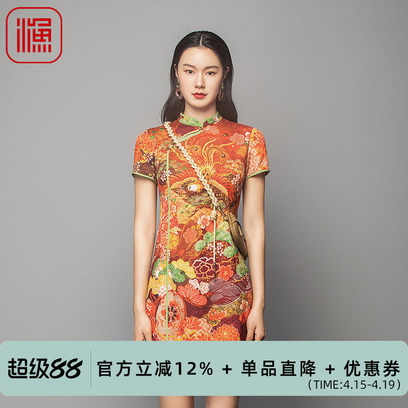 渔牌女装连衣裙2023新款女国潮凤凰印花桑蚕丝改良旗袍女FGFC0013