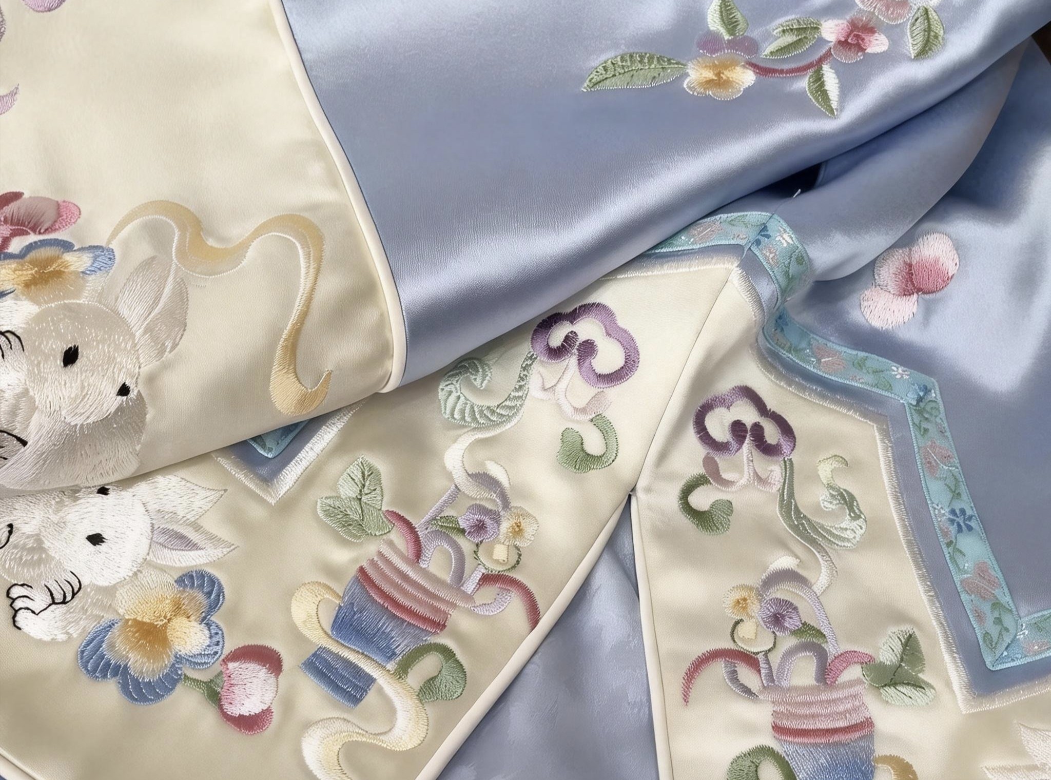 2026春款新中式玉兔刺绣太太服上衣复古国风斜襟醋酸外套国潮唐装