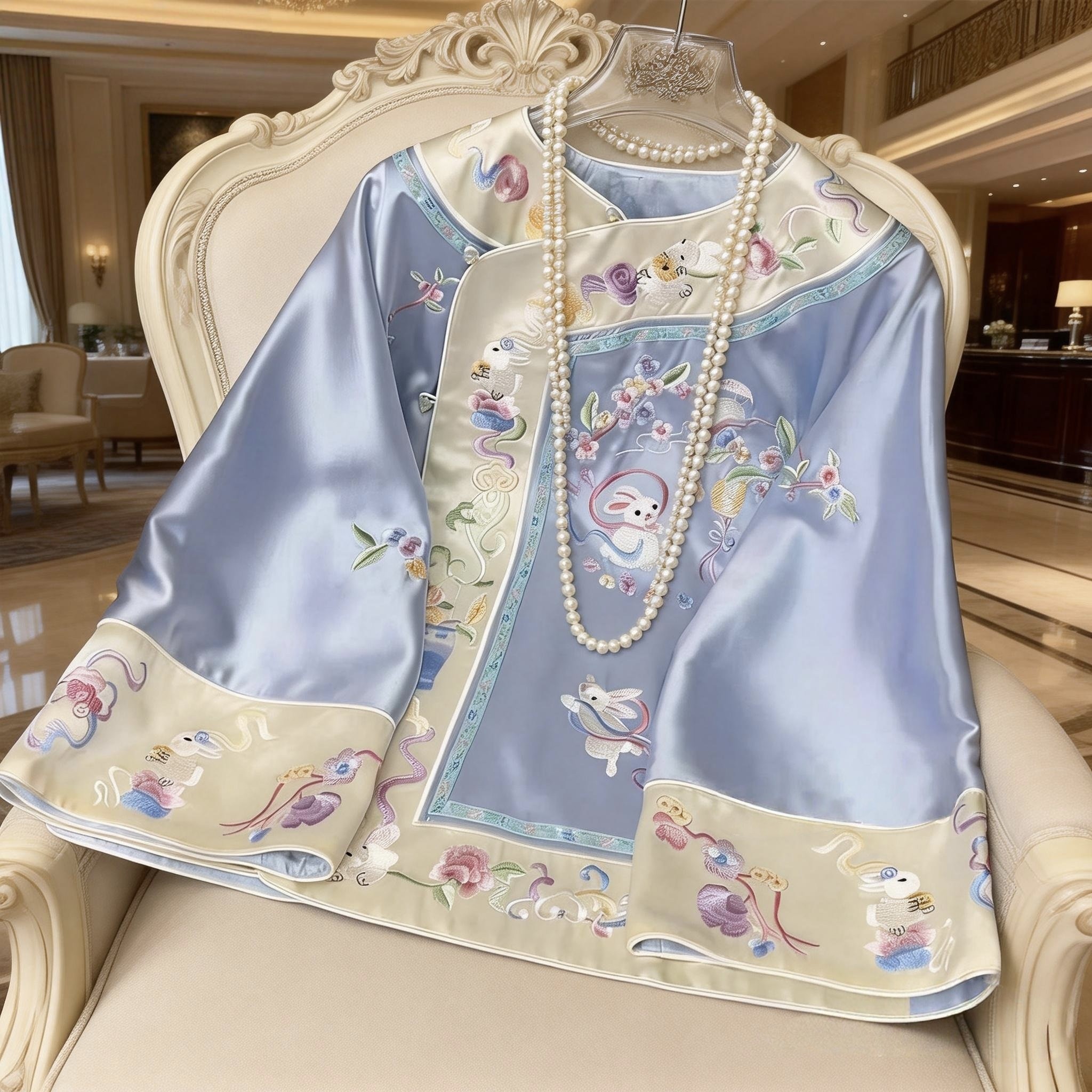 --------------------- 2026春款新中式玉兔刺绣太太服上衣复古国风斜襟醋酸外套国潮唐装 --------------------- --------------------- 【原价】999元 【券后价】399元