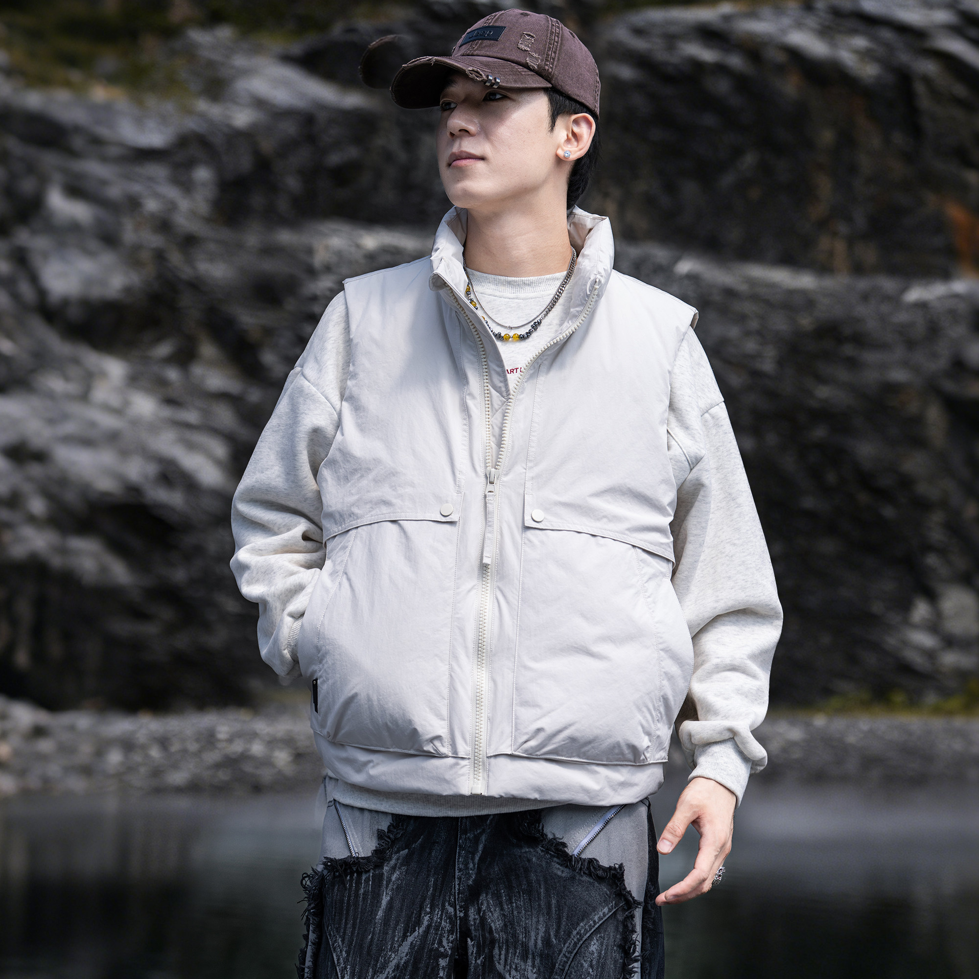 淘宝AOGZ羽绒马甲立领背心2025新款冬季加绒加厚保暖情侣款外穿坎肩潮