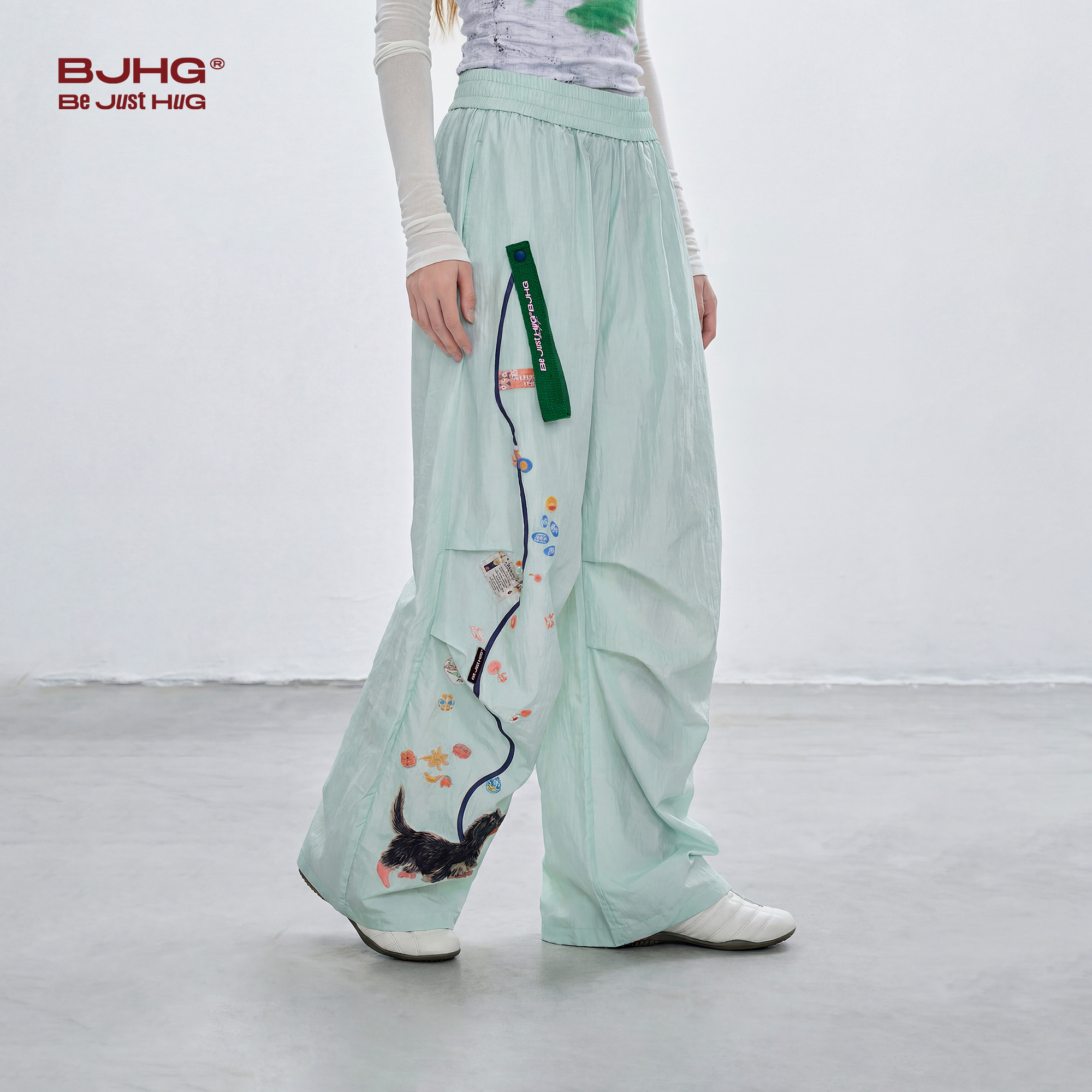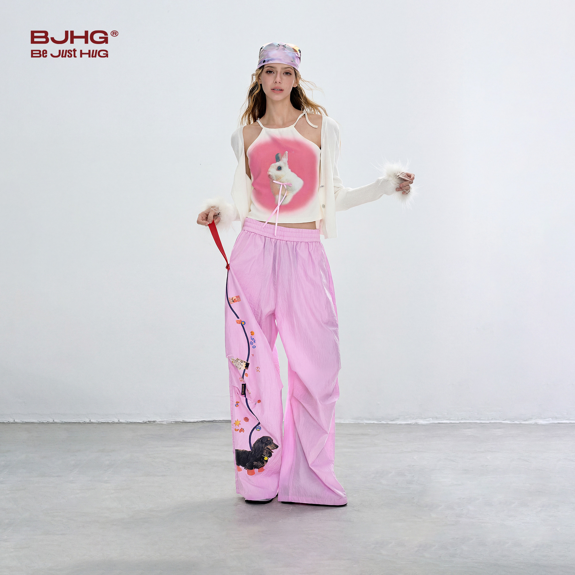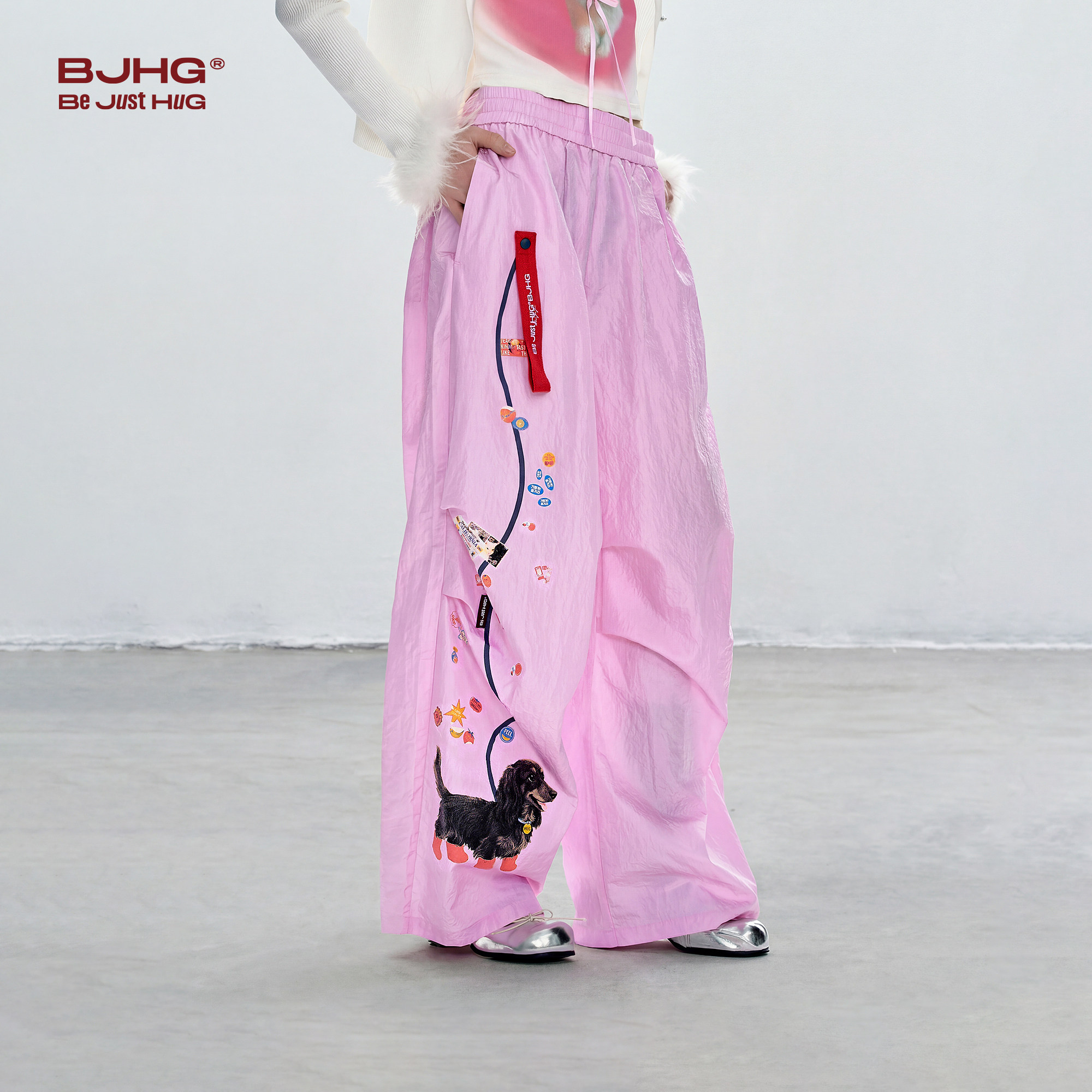 BJHG不计后果趣味遛狗休闲裤子女款春新款宽松直筒垂感运动伞兵裤