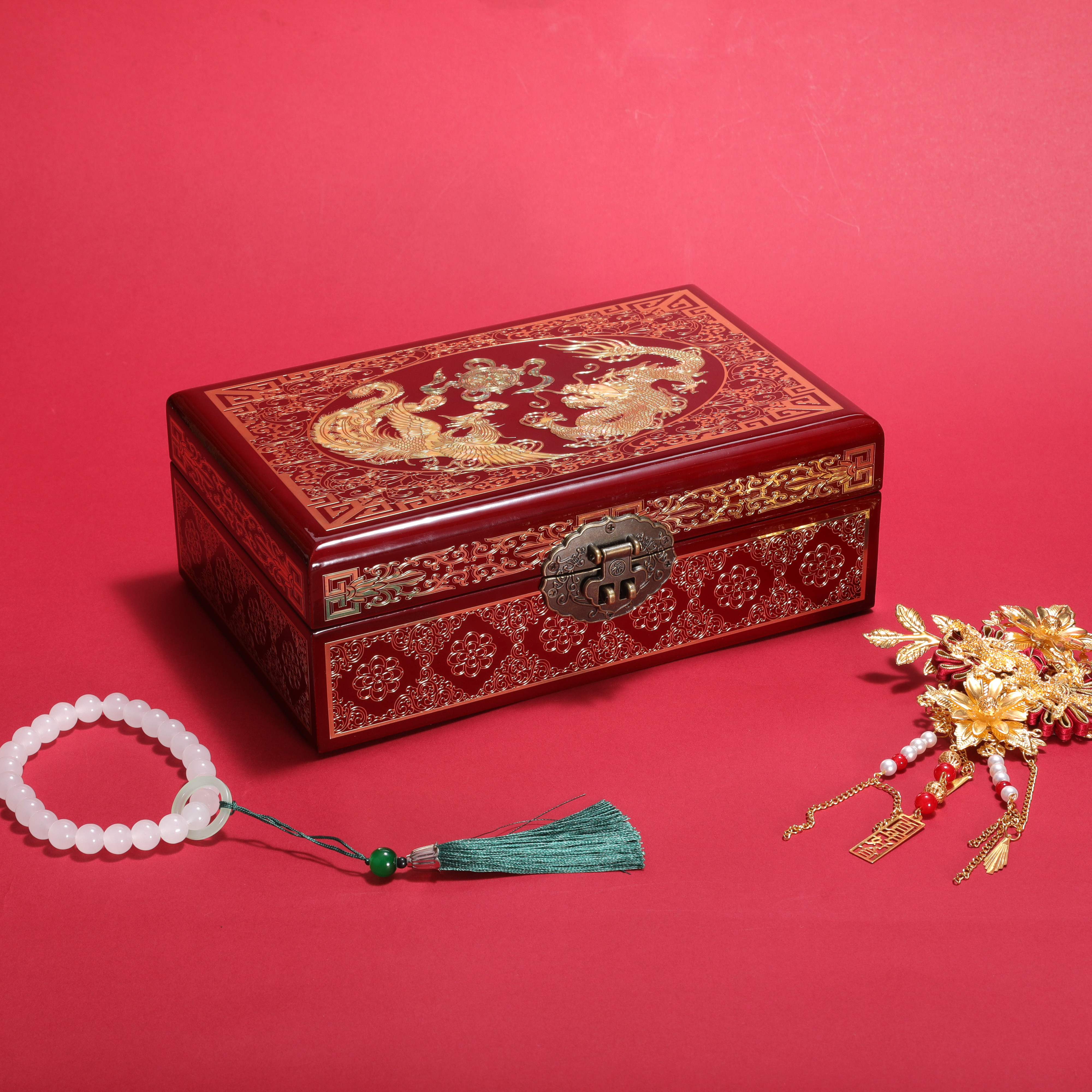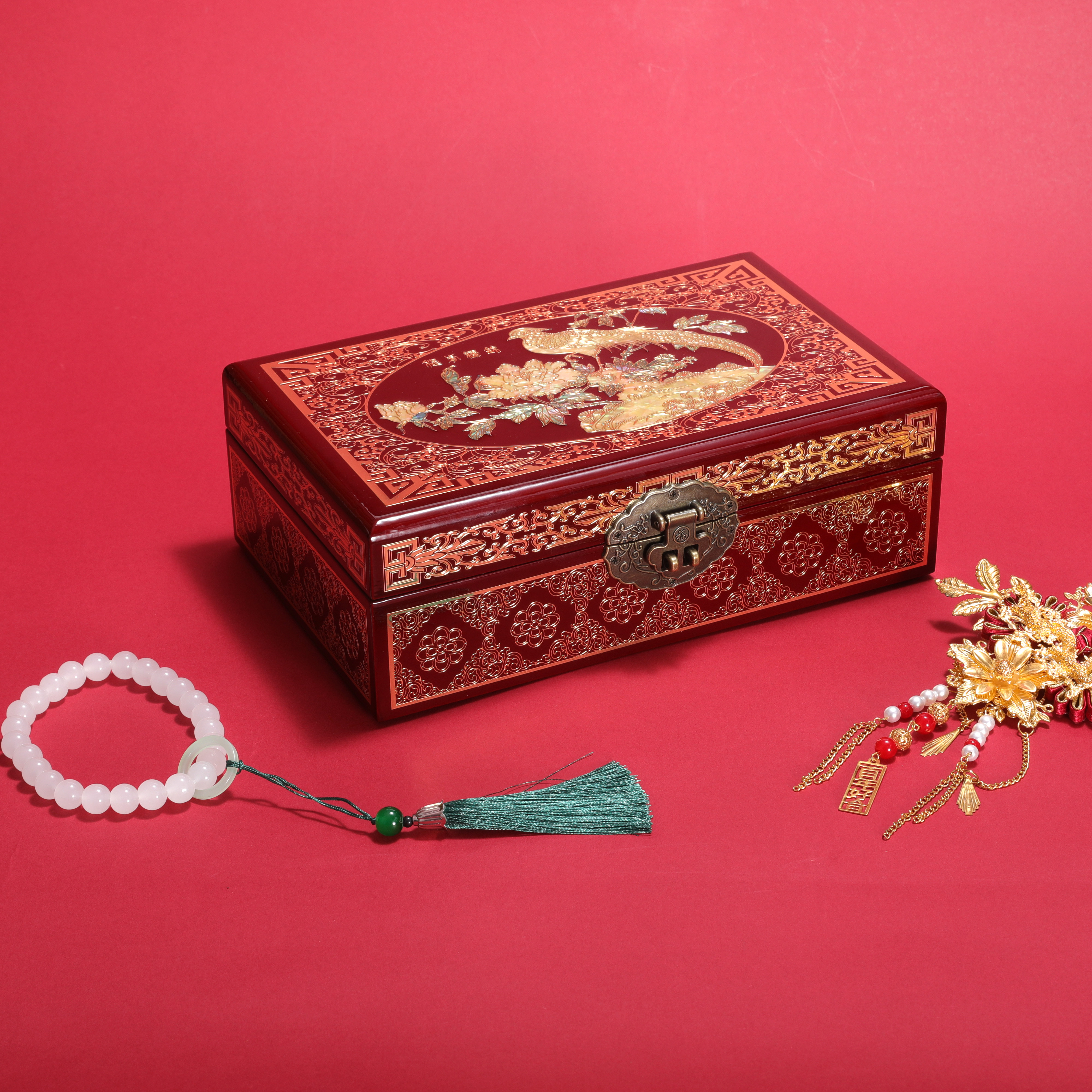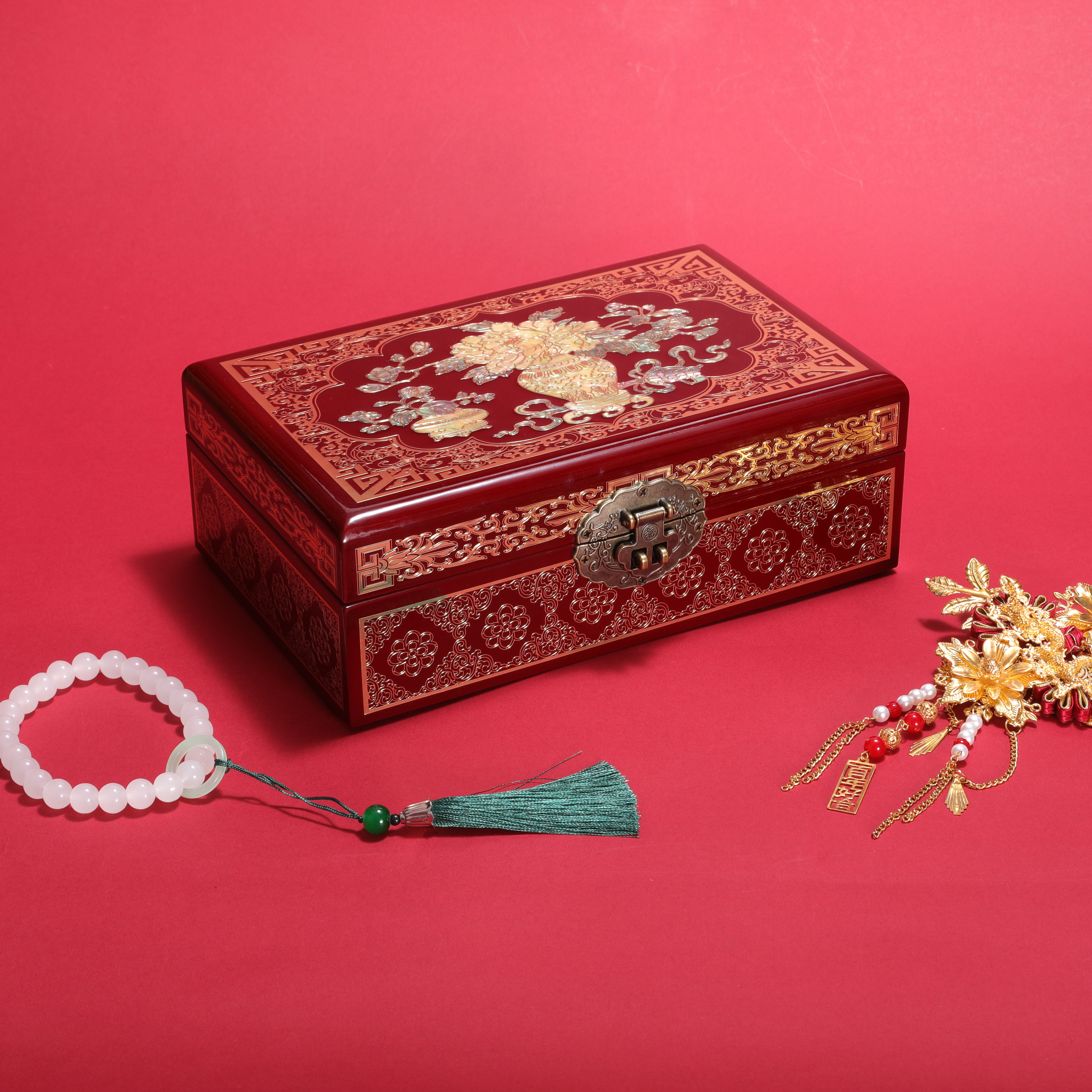 --------------------- 平遥漆器复古首饰盒三金珠宝高档收纳盒螺钿镶嵌木质妆奁陪嫁结婚 【原售价】228元 【现售价】200元 【推荐理由】