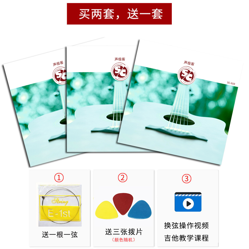 --------------------- 声极客吉他弦一套6根民谣吉他琴弦线单根一弦二弦通用全套吉它弦 【原售价】16.8元 【现售价】5.98元 【推荐理由】