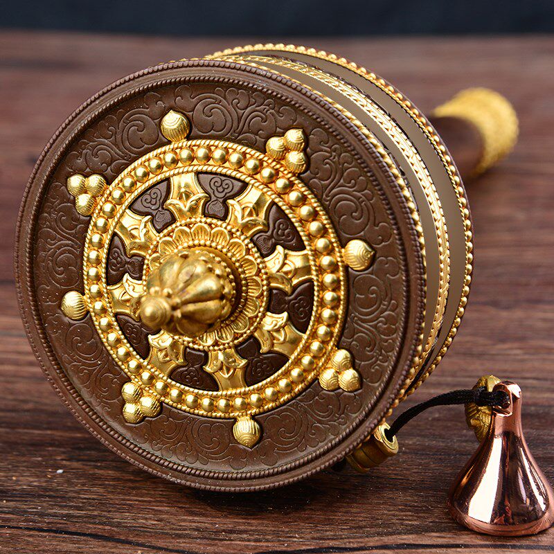 淘宝藏式手摇转动亚青转铜手摇纯铜双层浮雕家用摆件S古铜色大小号摆