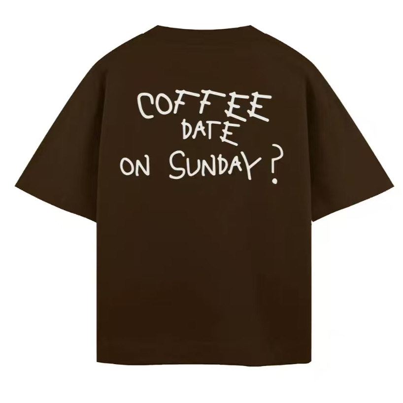 coffee on sunday t-shirt星期天咖啡美式休闲短袖T恤男咖啡色