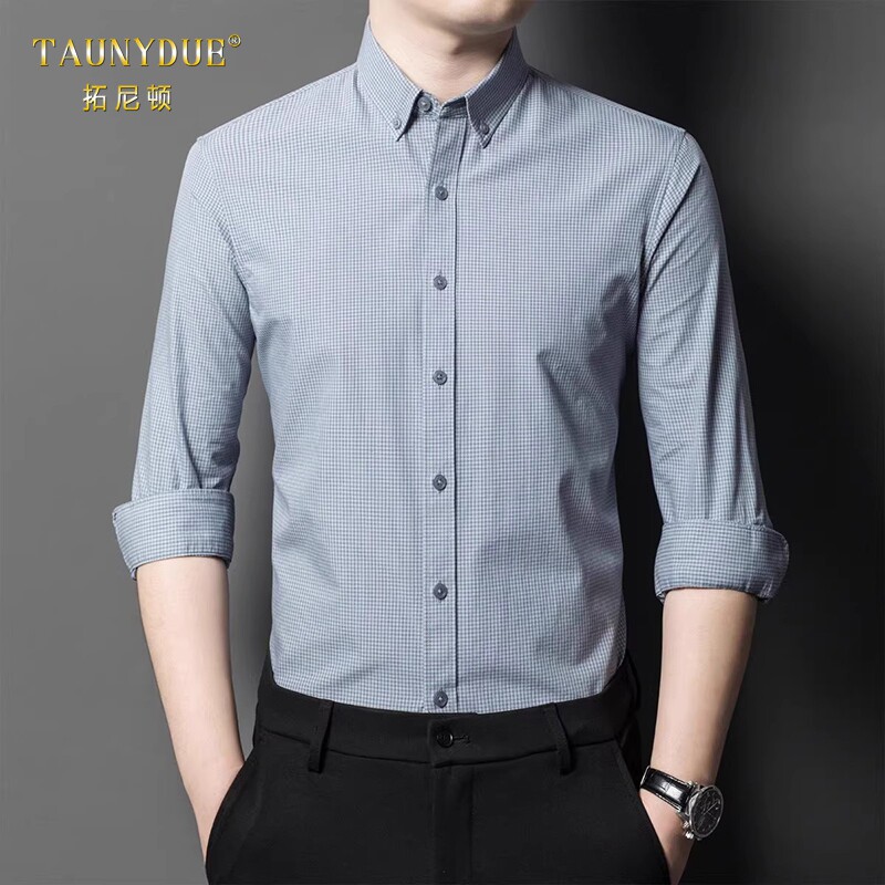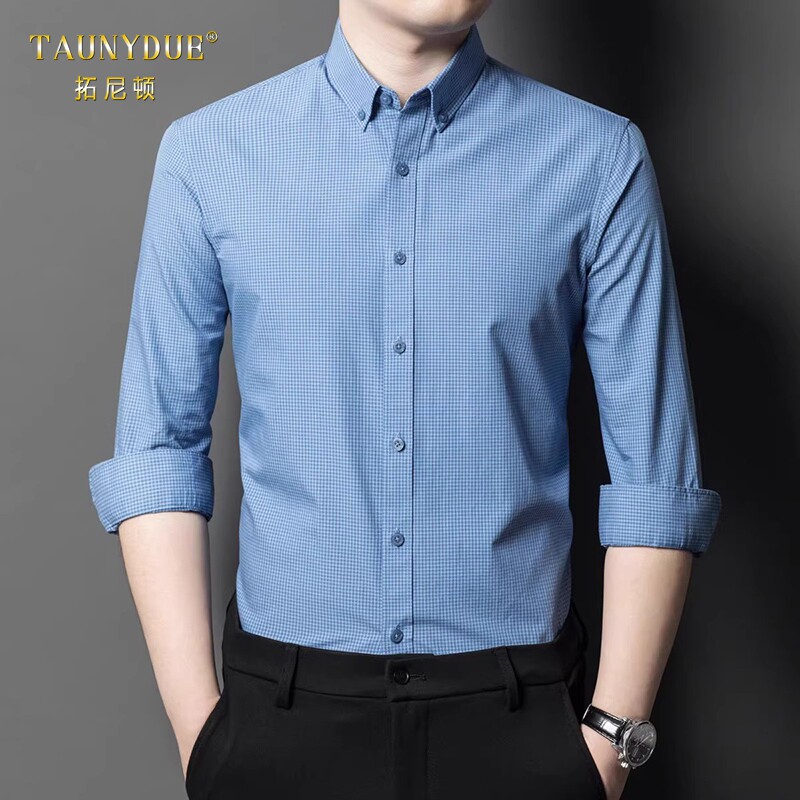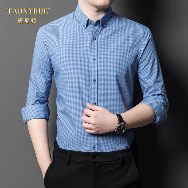 淘宝TAUNYDUE高端男士纯棉长袖衬衫春秋新款格子衬衣2026年打底男装