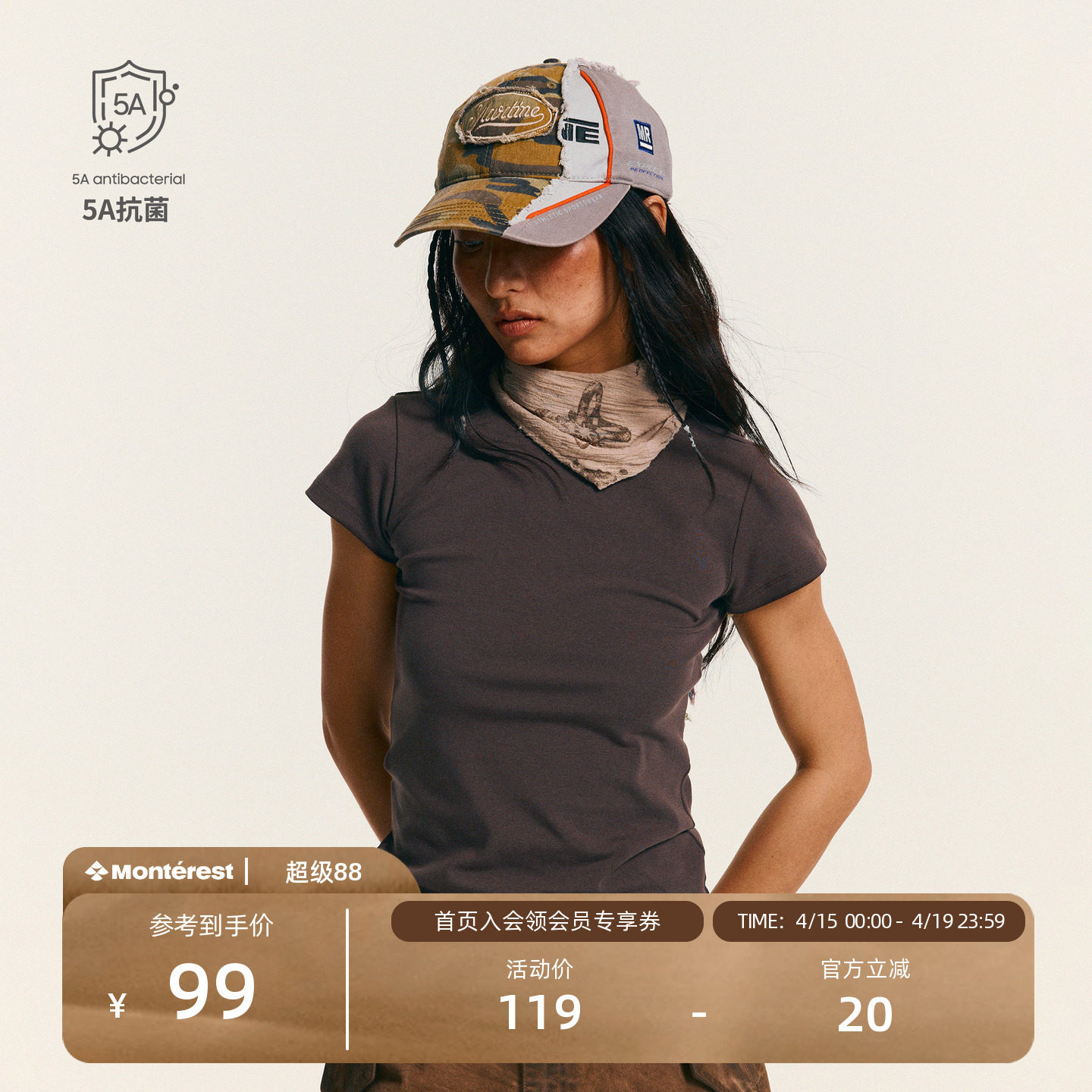 --------------------- 瞬时山野Monterest户外5A抗菌合体基础圆领修身短袖T恤内搭打底女 【原售价】129元 【现售价】99元 【推荐理由】