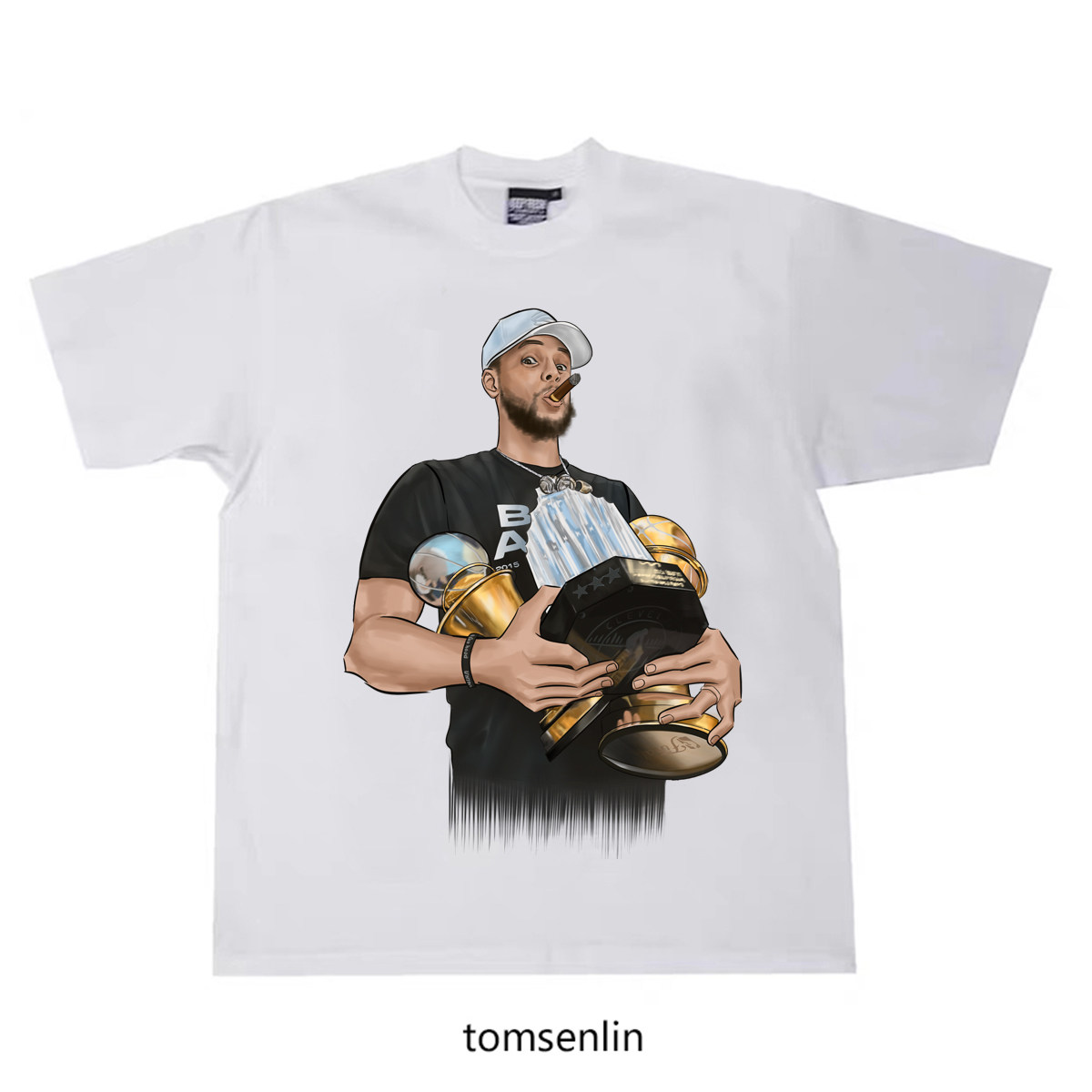 tomsenlin汤森林原创斯蒂芬库里总决赛胜利游行捧杯抽雪茄短袖