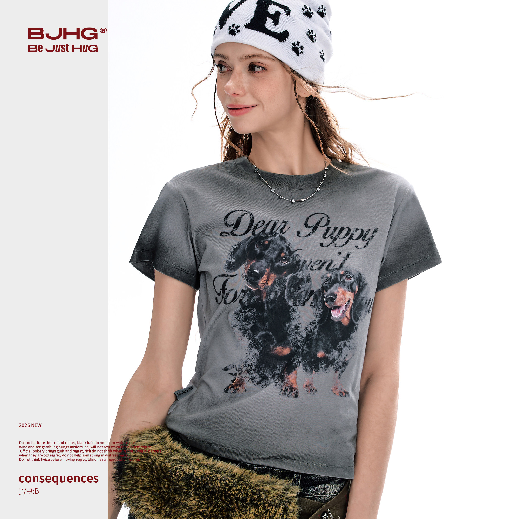 --------------------- 【不宠系列】BJHG不计后果腊肠狗短袖T恤女款夏美式做旧水洗上衣 【原售价】209元 【现售价】139元 【推荐理由】