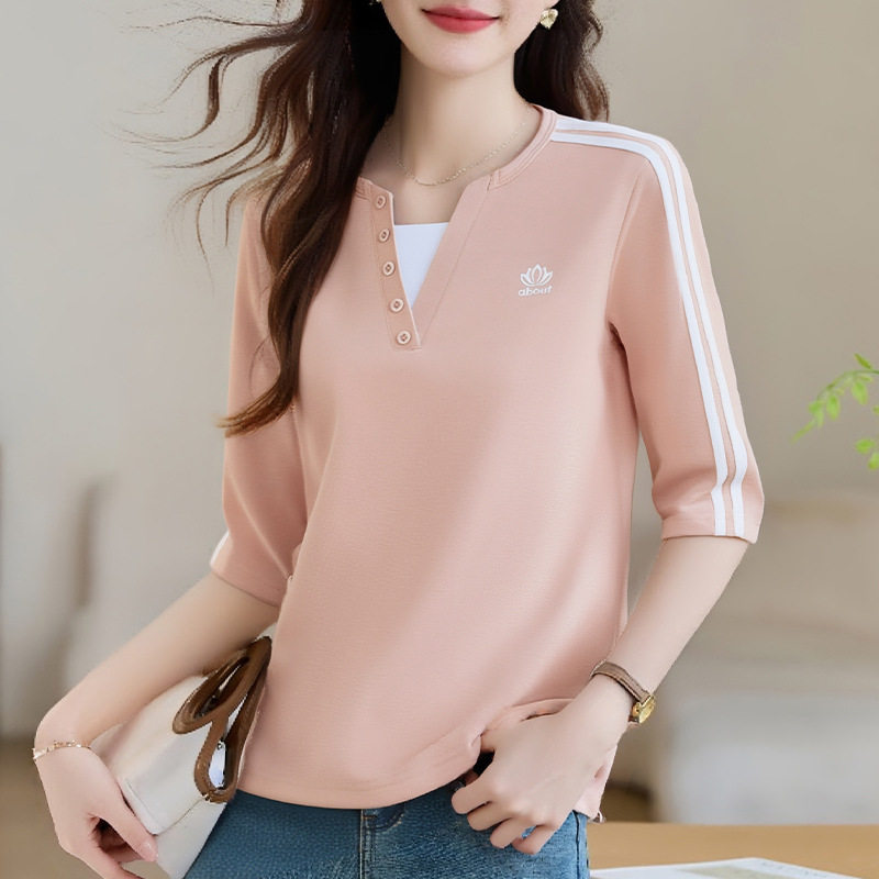 --------------------- 正肩宽松洋气七分袖遮肉显瘦假两件2025年夏季上衣时尚龄女装 【原售价】79元 【现售价】79元 【推荐理由】