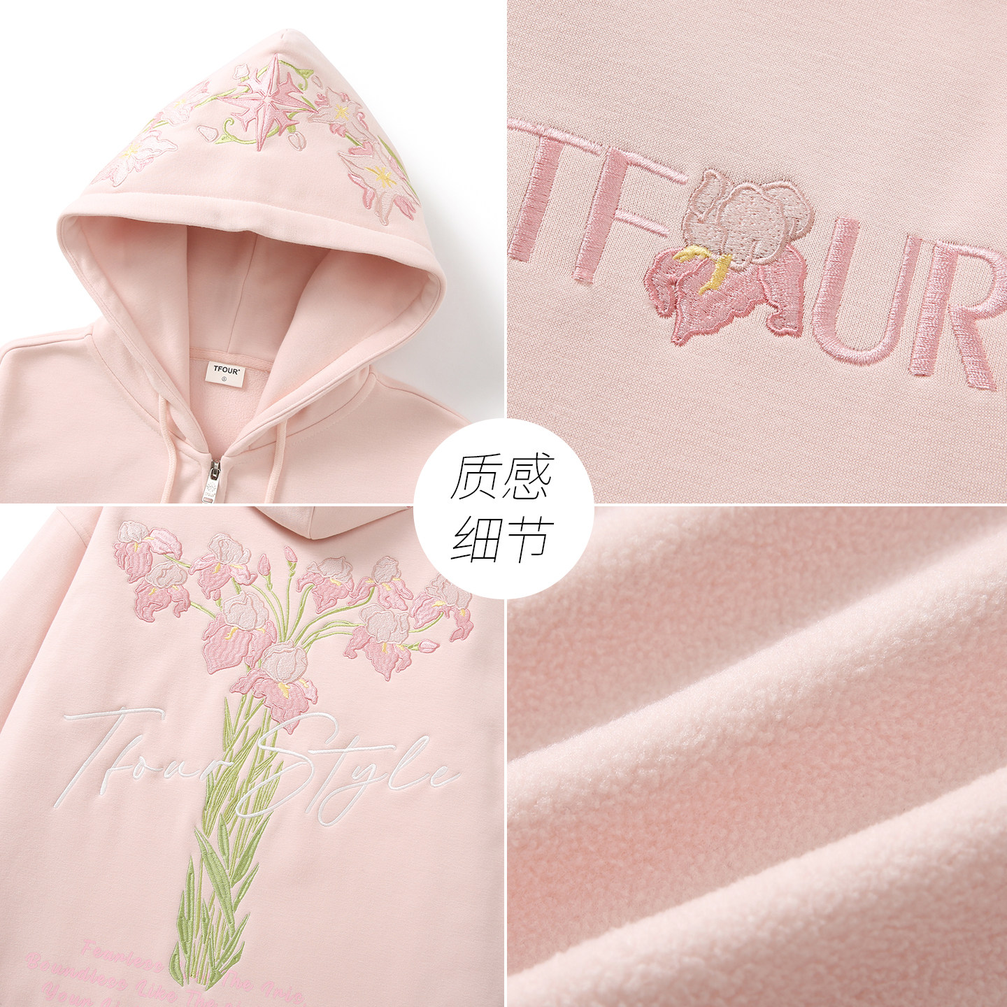 --------------------- TFOUR 2026美式重磅花卉刺绣卫衣男女春秋季潮牌宽松情侣薄绒外套 【原售价】399元 【现售价】209元 【推荐理由】