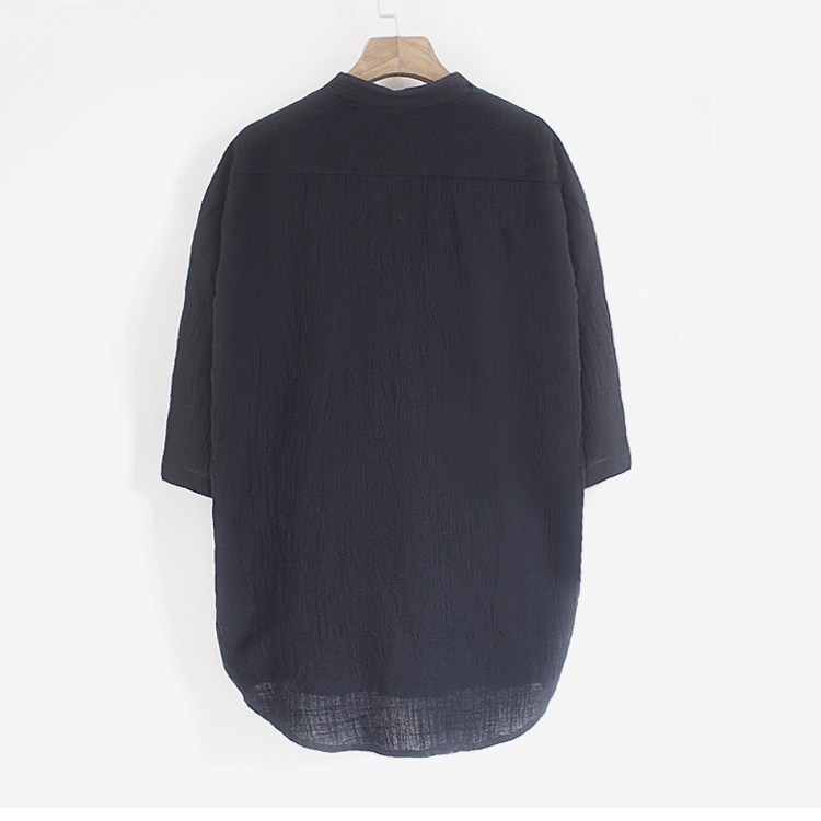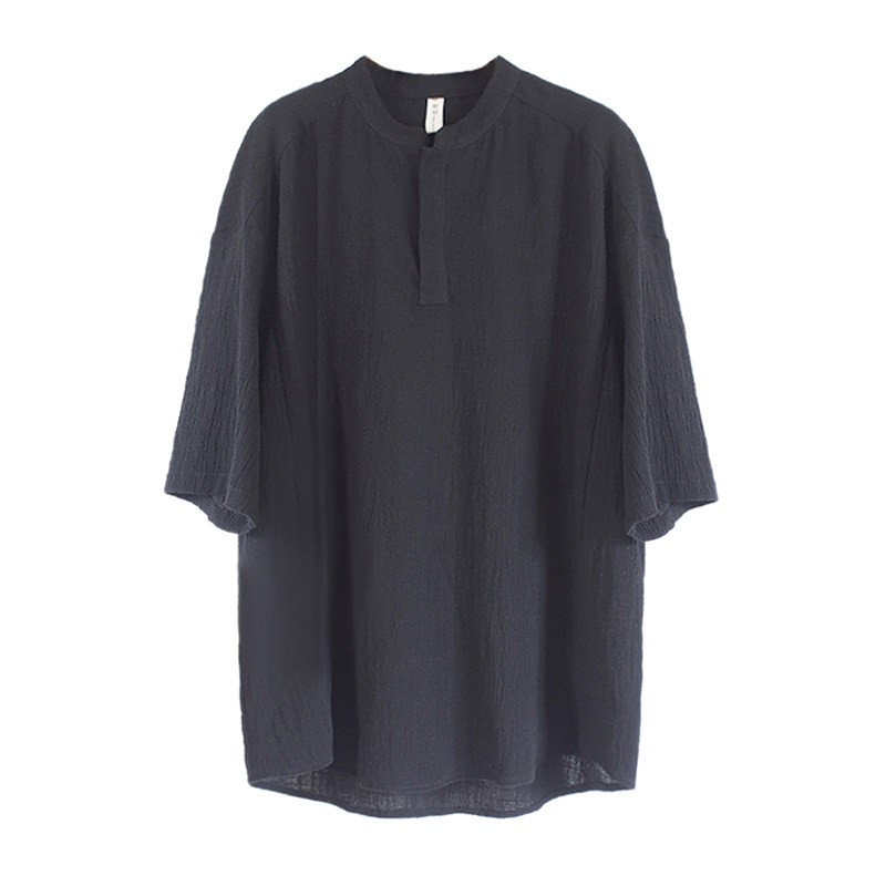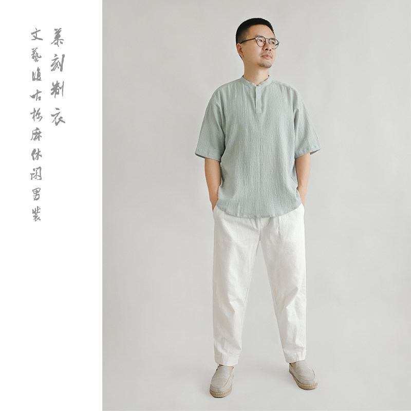 慕刻原创亚麻复古潮流上衣中式大码T恤中国风男装宽松茶禅服