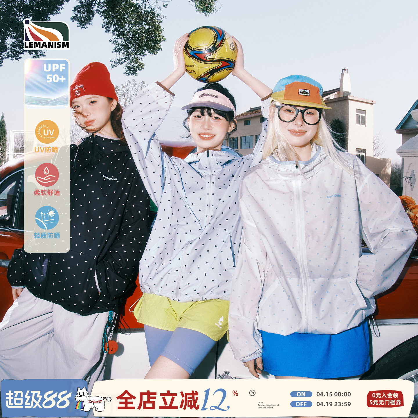 --------------------- lemanism美式潮牌满印波点防晒夹克男2026春夏新款情侣款宽松外套 --------------------- --------------------- 【原价】199.9元 【券后价】165.9元