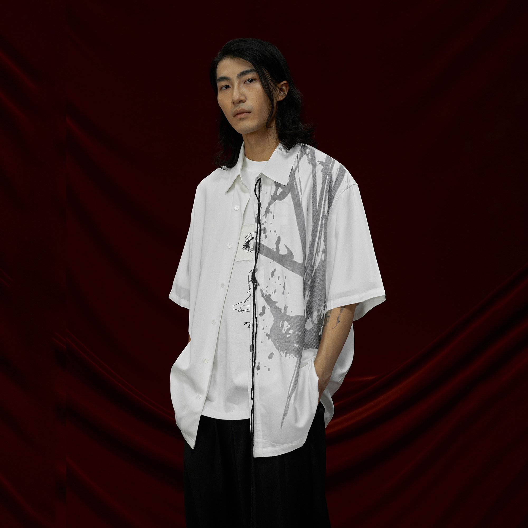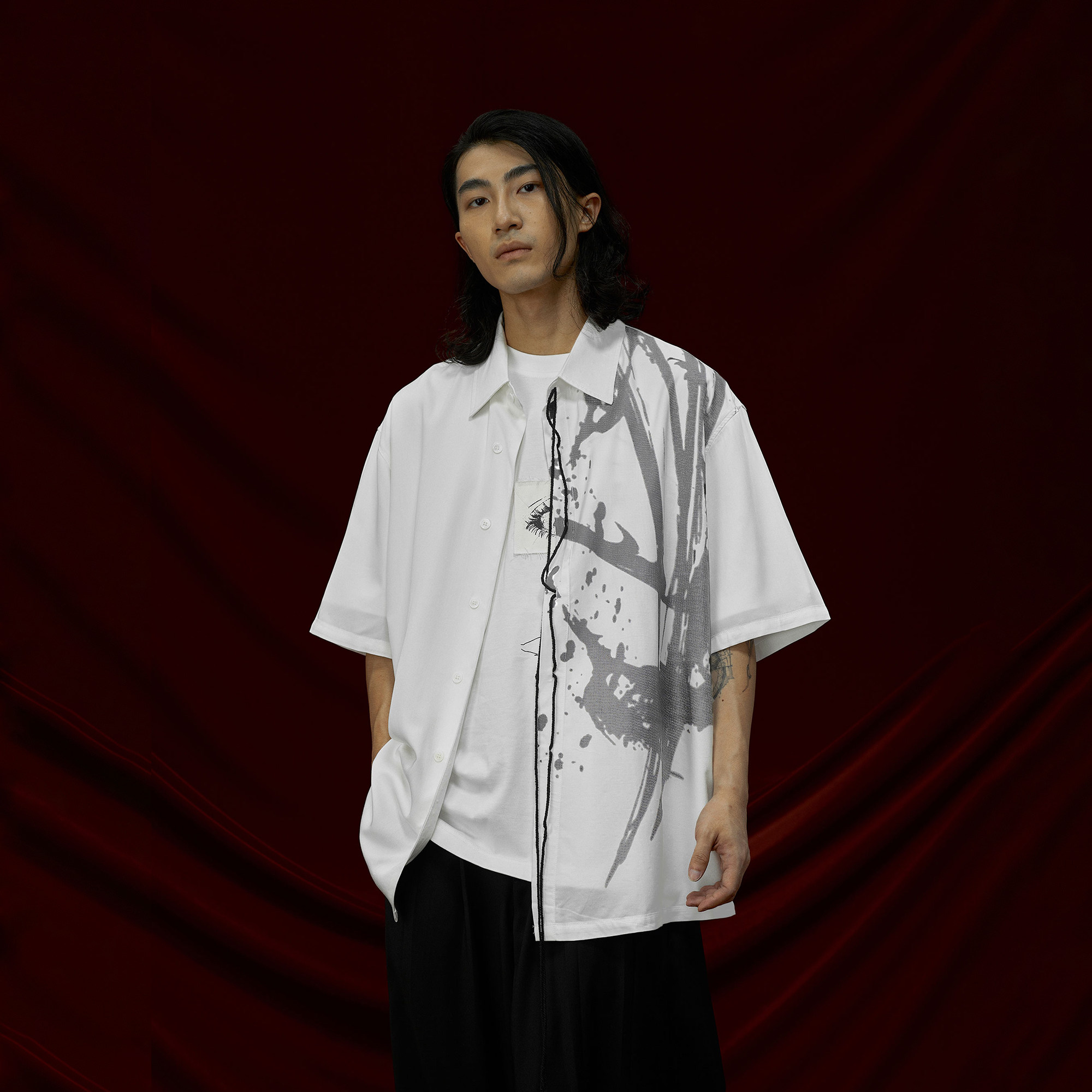--------------------- THOS 暗黑风复古网点印花短袖衬衫百搭宽松休闲天丝垂感情侣衬衣 【原售价】259元 【现售价】181元 【推荐理由】
