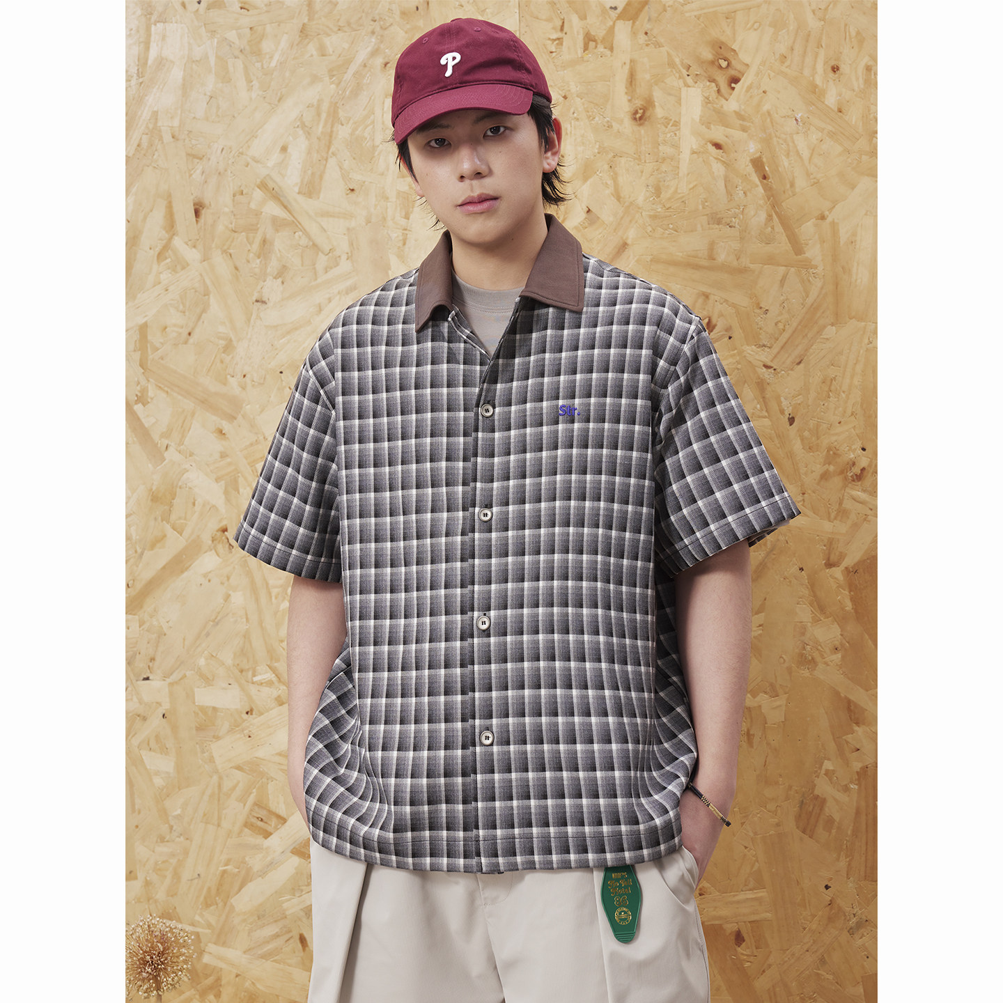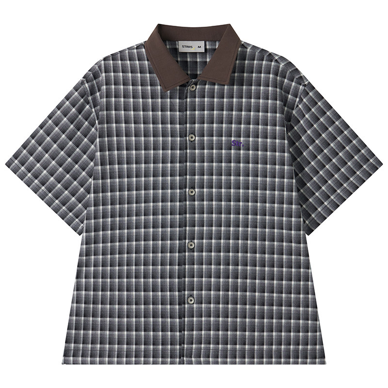 STRIIS 26SS俱乐部刺绣格子短袖衬衫宽松衬衣复古休闲外套男女