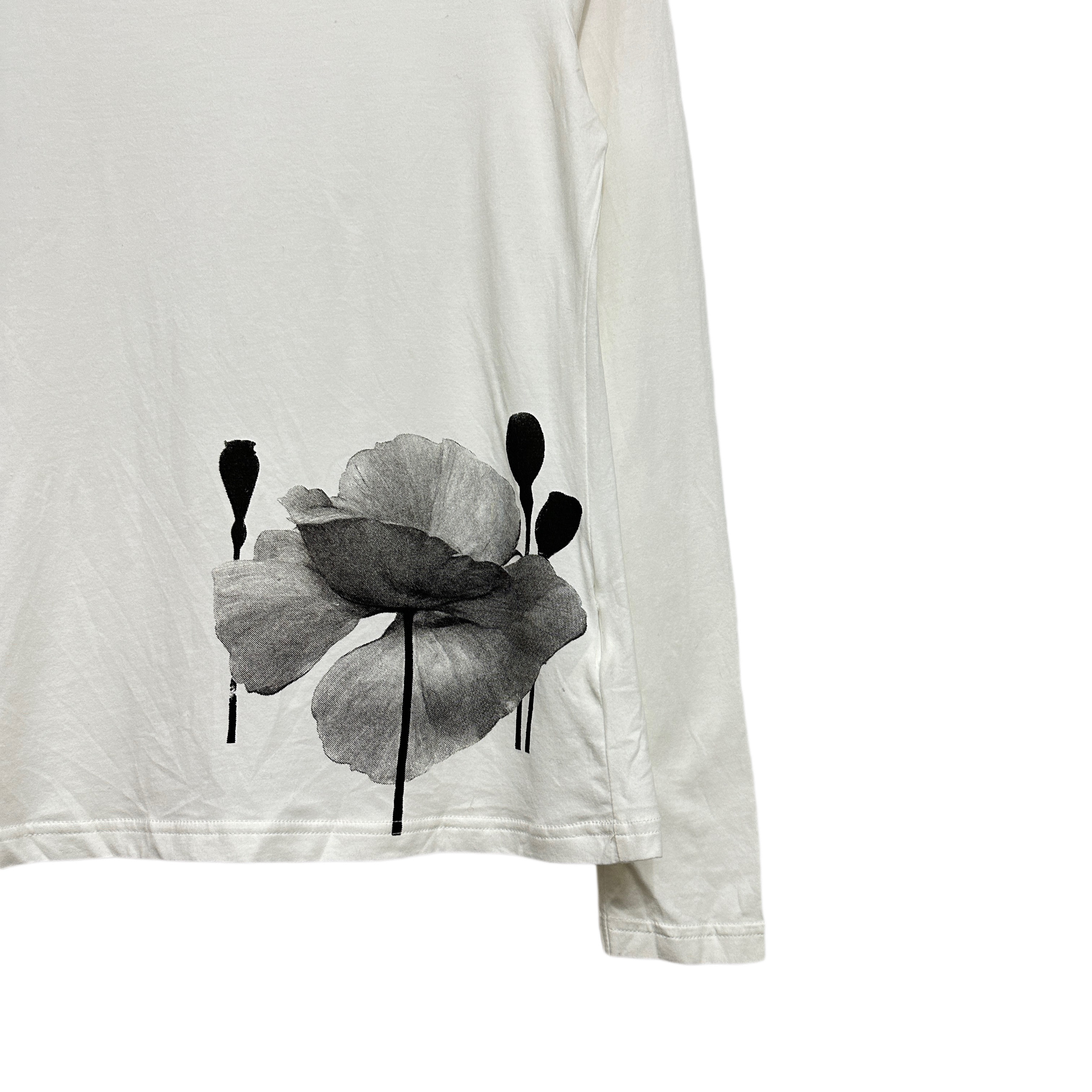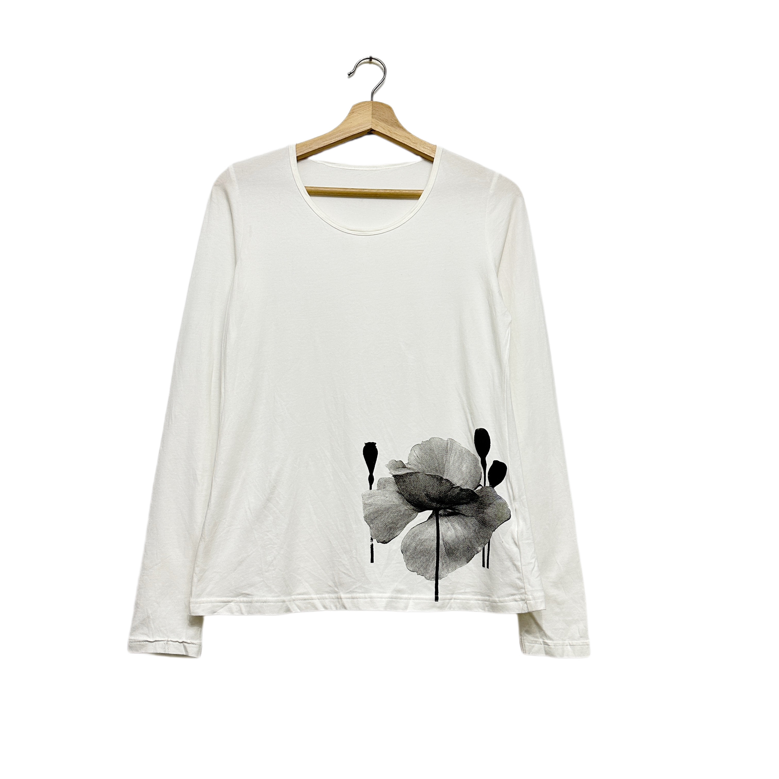 圣迪折扣女装 时尚写意水墨印花休闲简约圆领修身长袖弹力棉T恤