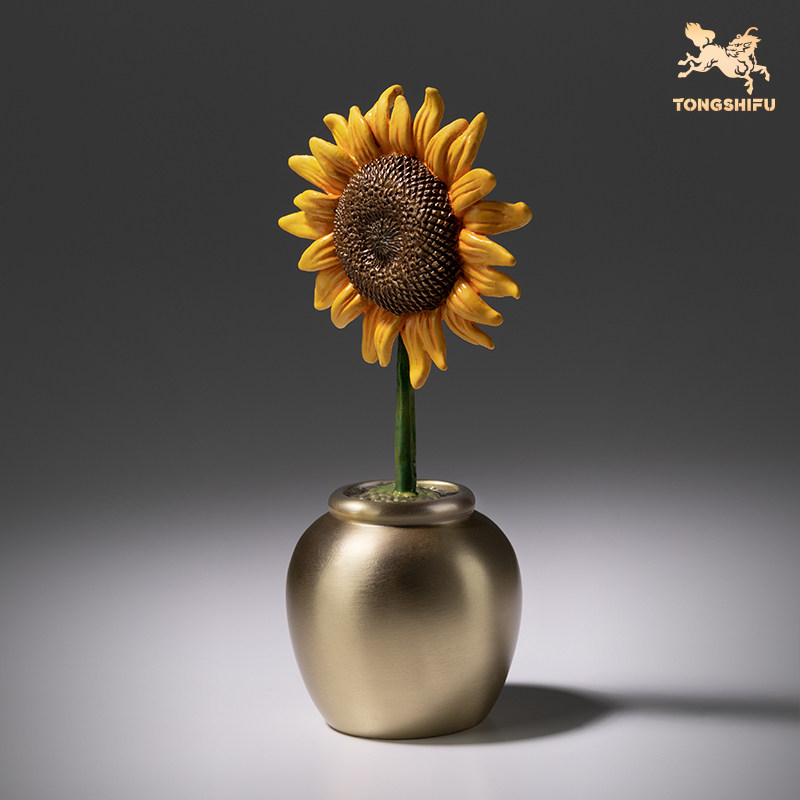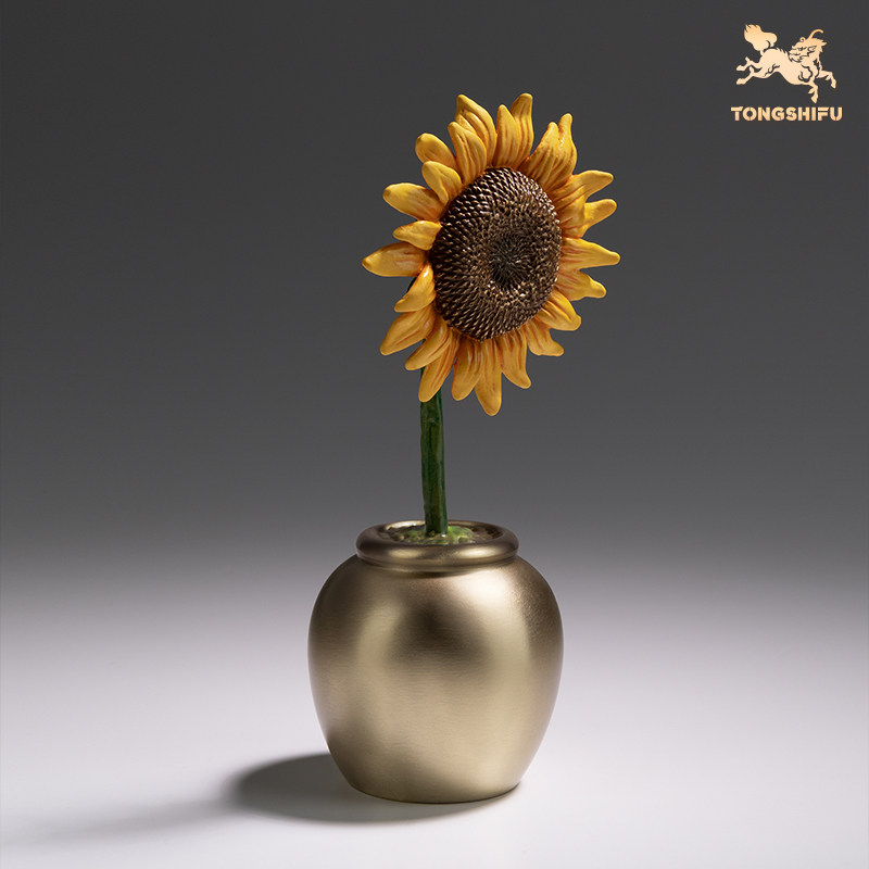 铜师傅《一举夺魁》桌面工位创意向日葵治愈情绪小摆件 乔迁礼物