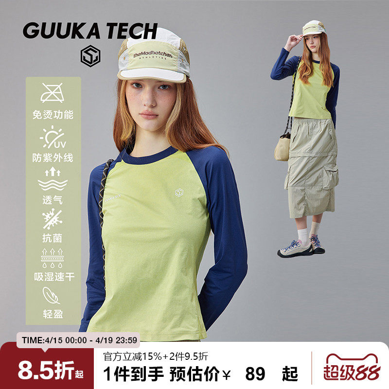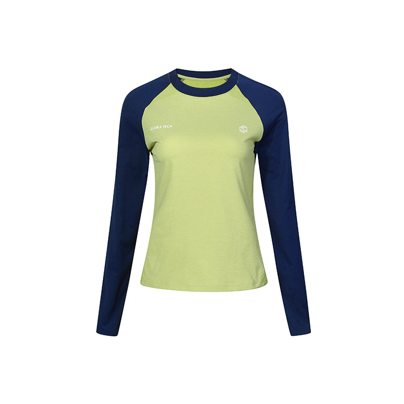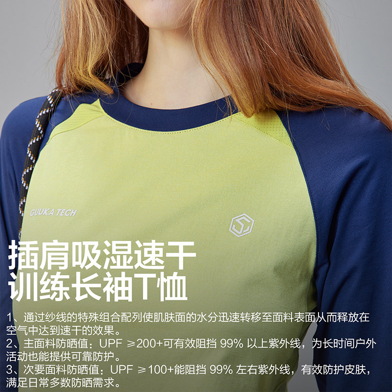 GuukaTech日系撞色吸湿速干长袖t恤女 户外防晒抑菌显瘦运动上衣