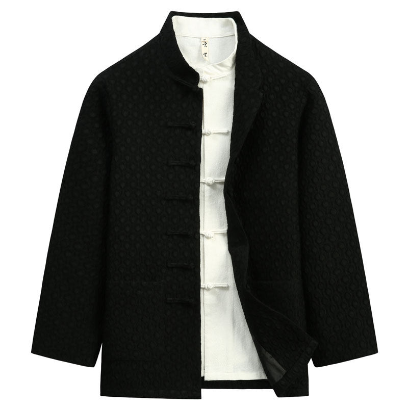 --------------------- 唐装男秋季新品中国风男装复古中式改良盘扣圆点提花外套男国潮 【原售价】498元 【现售价】323元 【推荐理由】