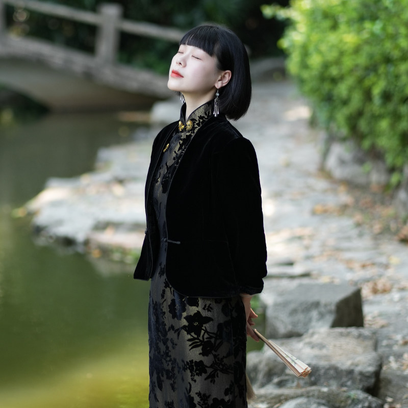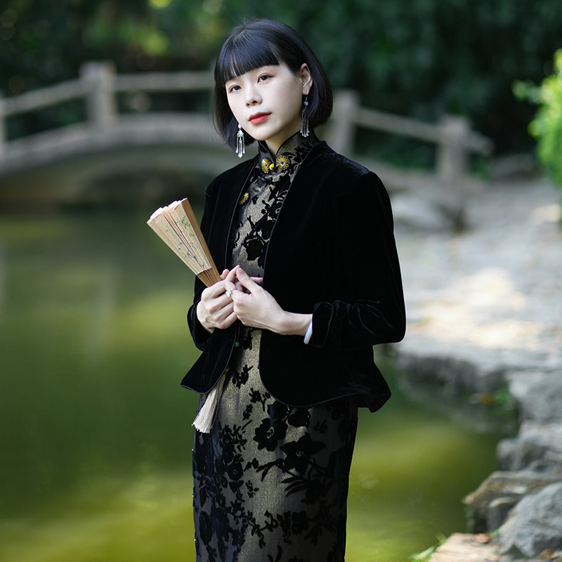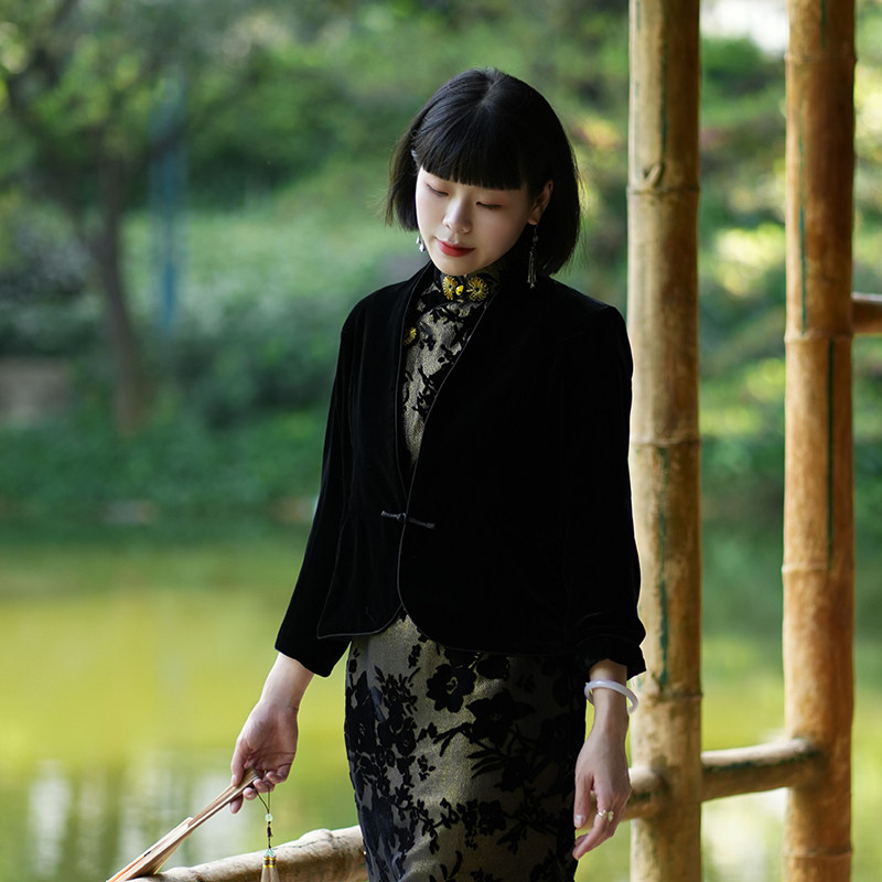 素集三重门2026年真丝%100桑蚕丝丝绒外套春夏优雅高级中式国风女