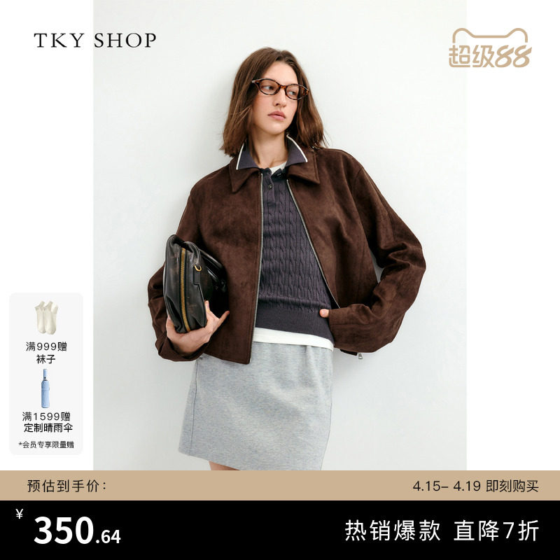 --------------------- TKY SHOP摩卡棕仿麂皮绒翻领短外套女春新品甜酷风复古简约上衣 【原售价】699元 【现售价】320元 【推荐理由】