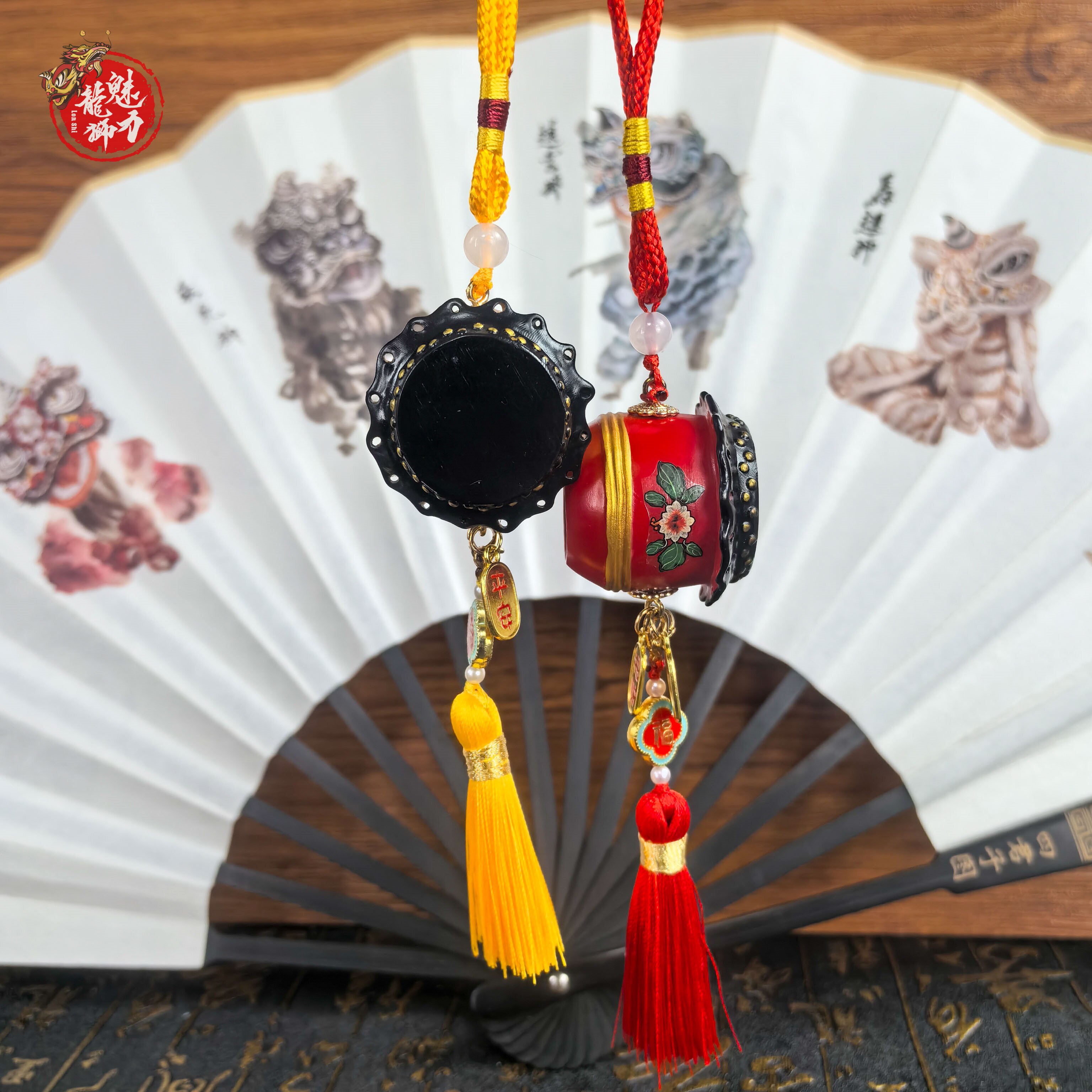 迷你南狮鼓汽车车载小挂件创意车内装饰品醒狮非遗文创礼品挂饰