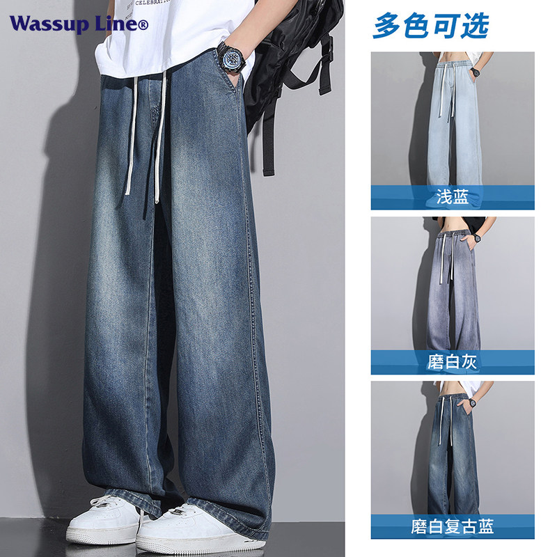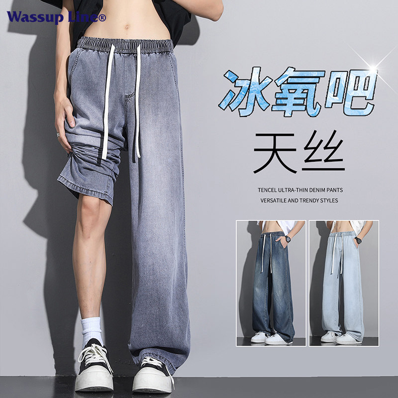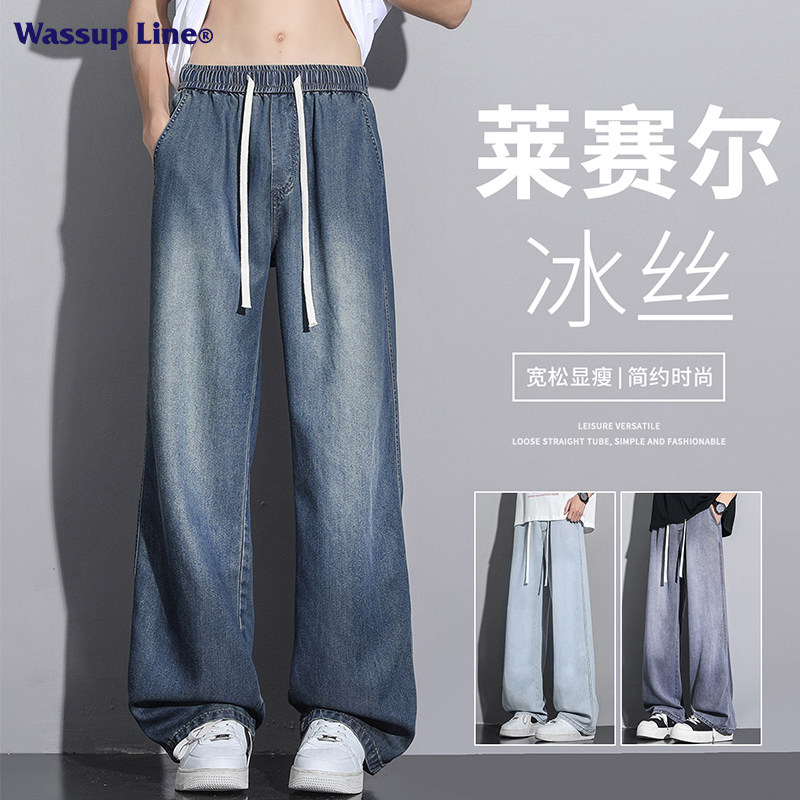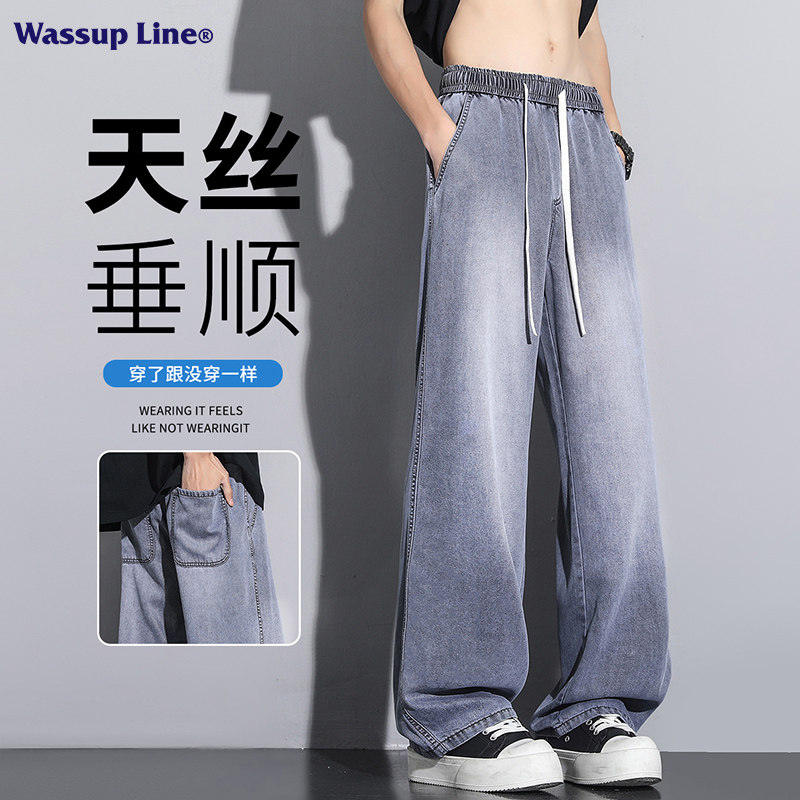 WASSUP Line潮牌夏季冰丝速干牛仔裤男款宽松百搭垂感直筒休闲裤