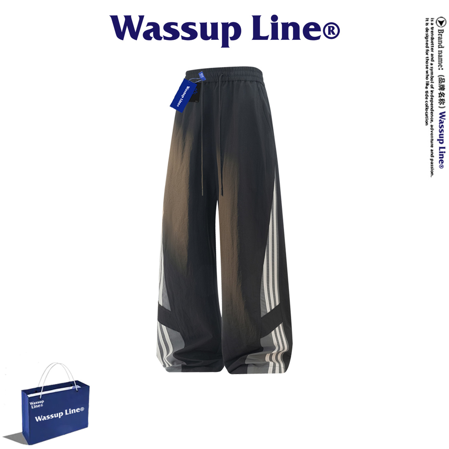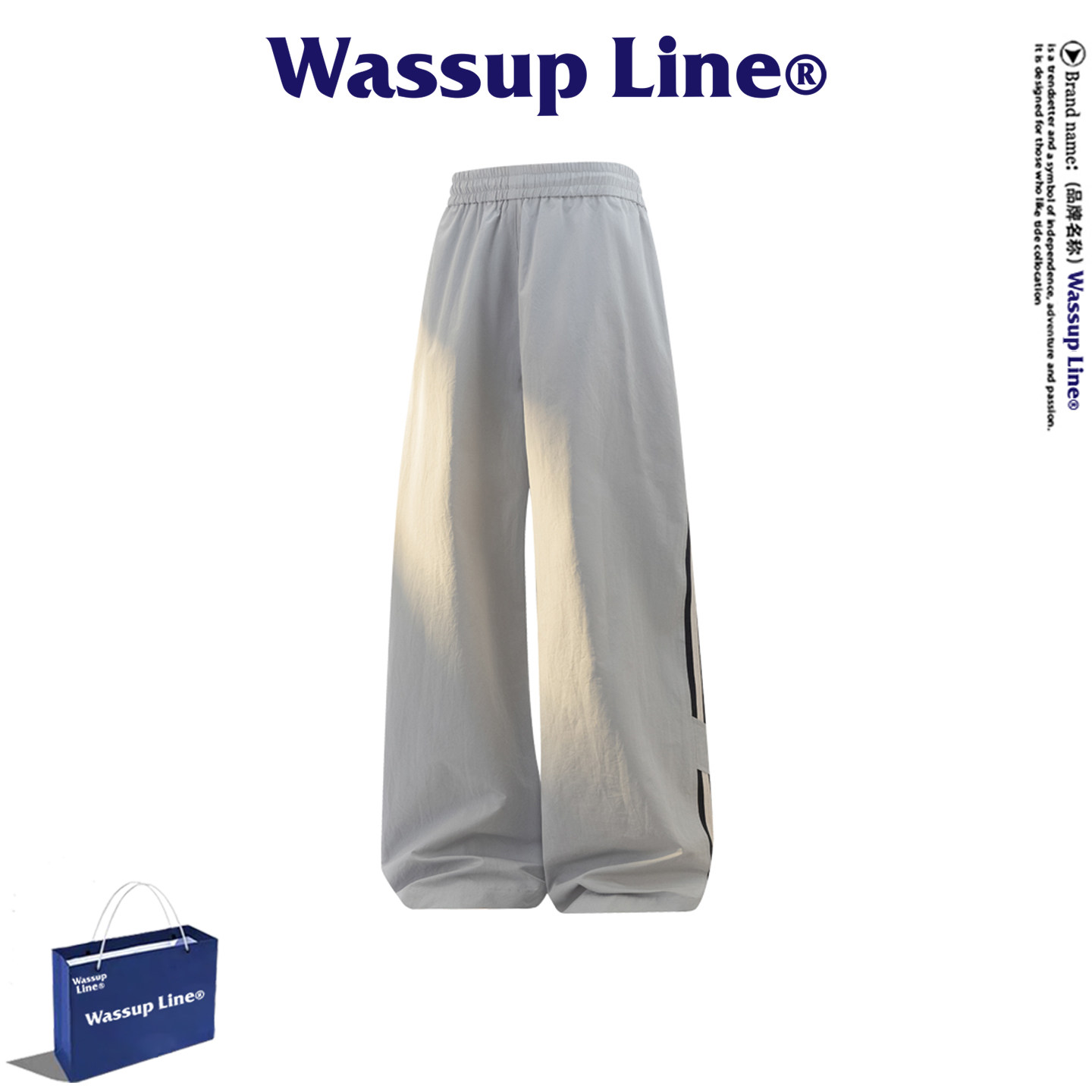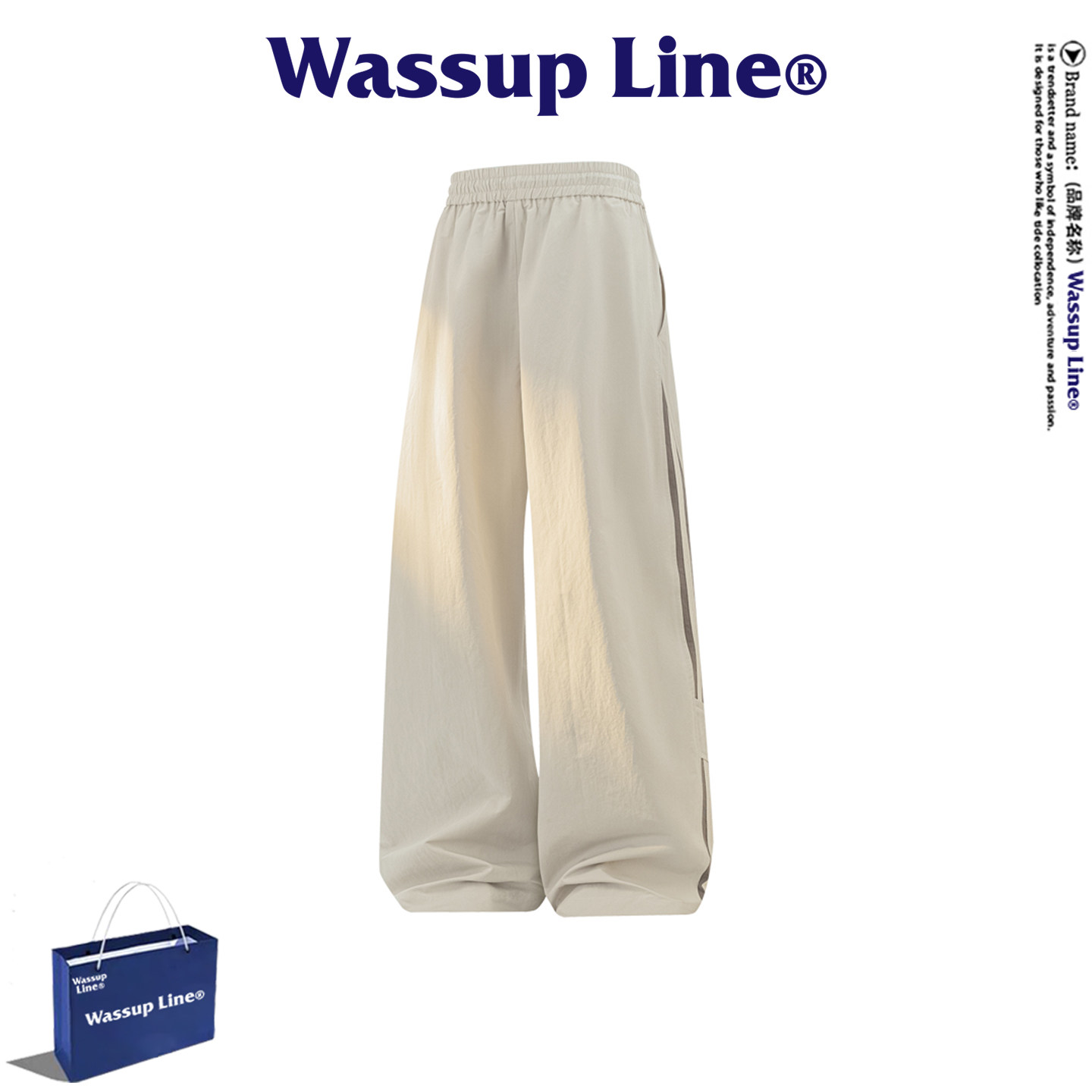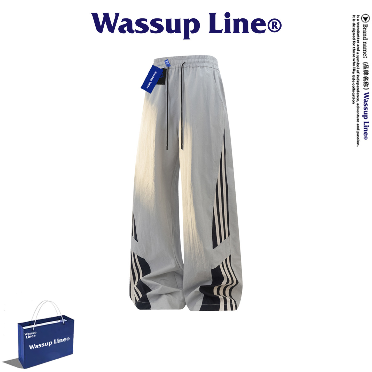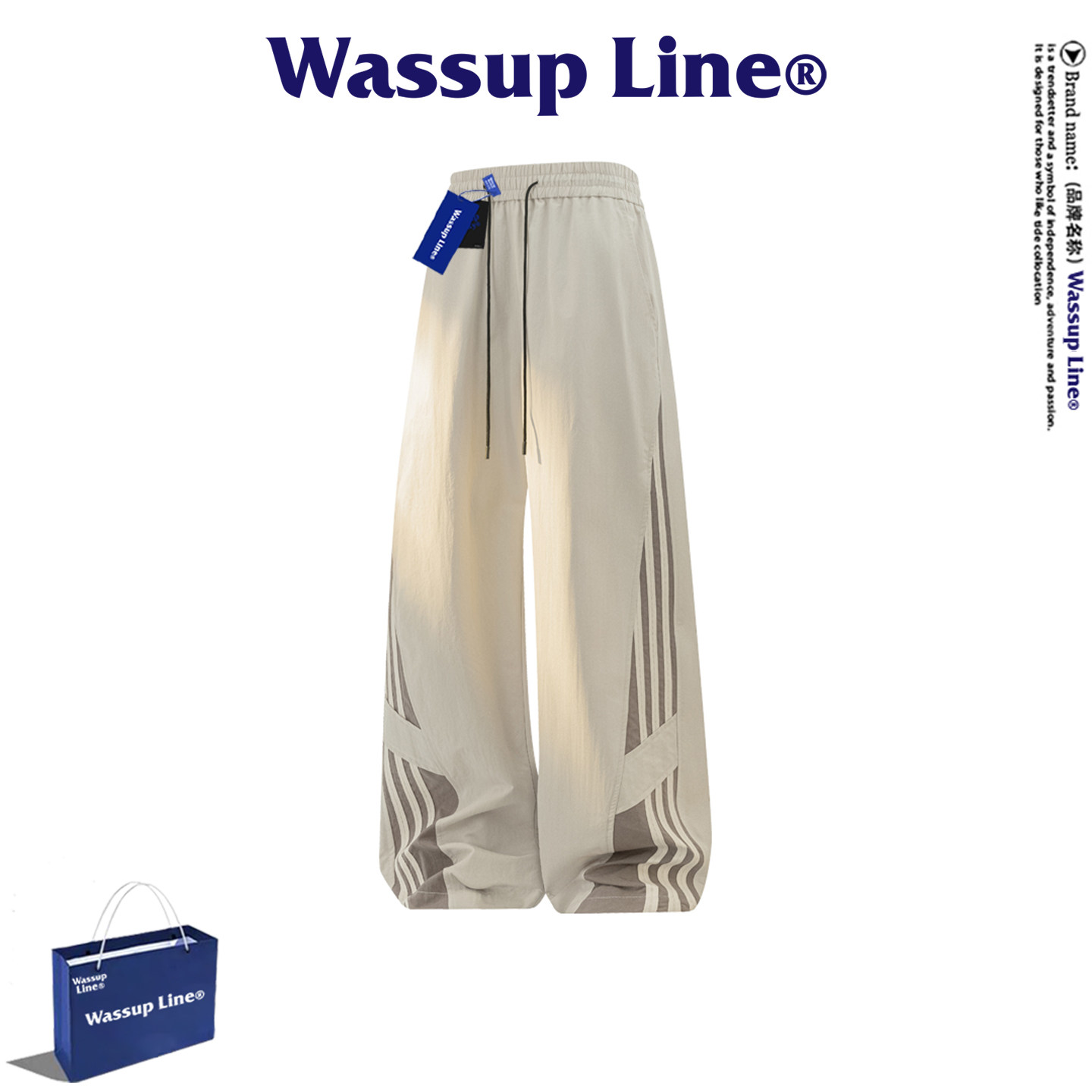 WASSUP Line潮牌冰丝裤美式三条杠阔腿裤男宽松夏季直筒休闲长裤