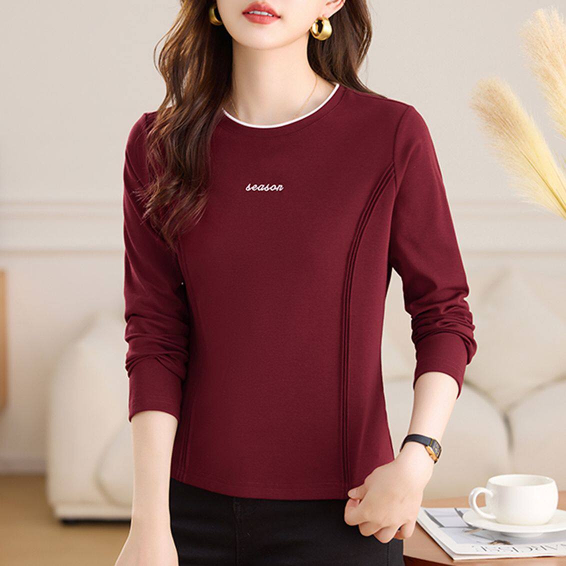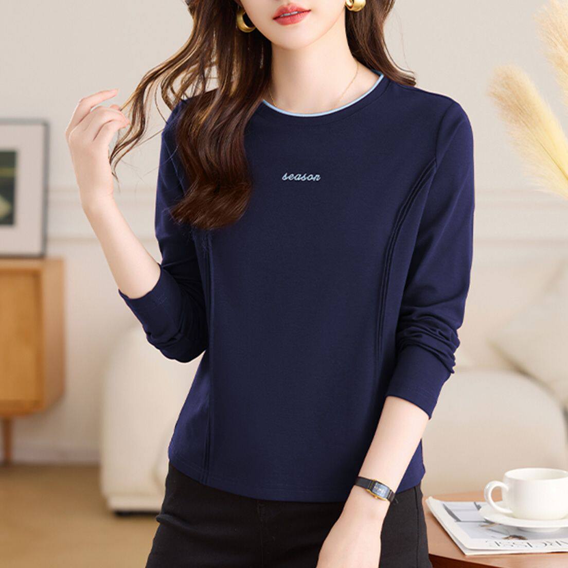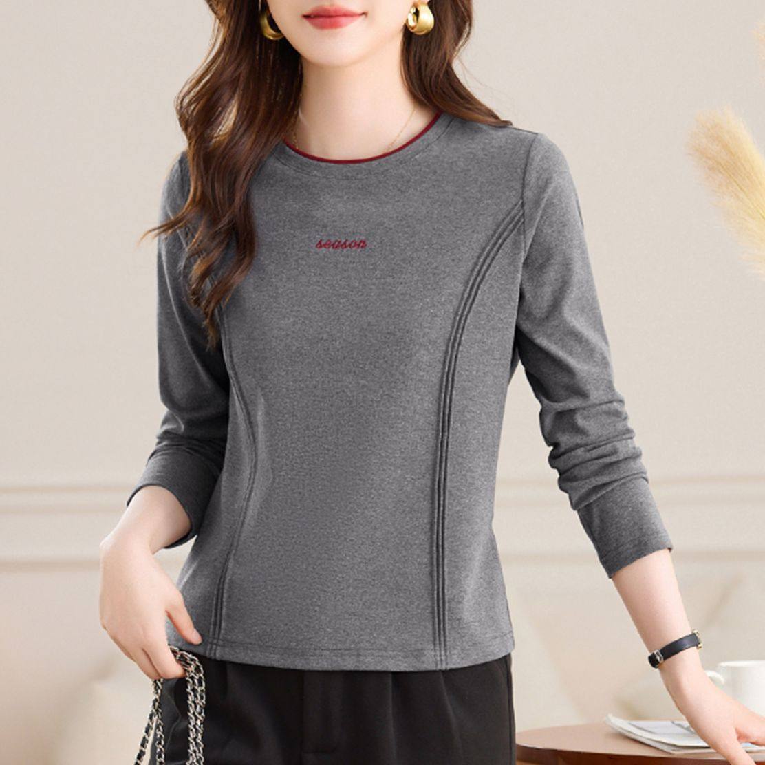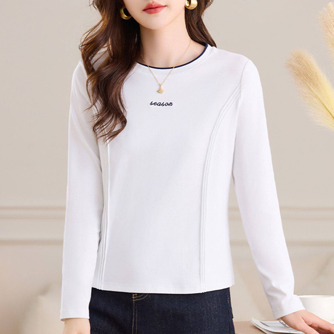 淘宝正肩长袖t恤女士内搭打底衫春秋2025新款时尚洋气单穿上衣体恤衫