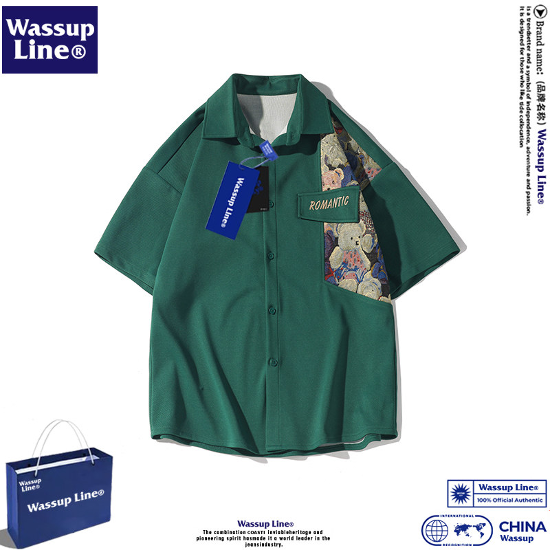 --------------------- WASSUP Line潮牌短袖衬衫男2024年日系复古薄款宽松小熊拼接上衣 【原售价】299元 【现售价】51元 【推荐理由】