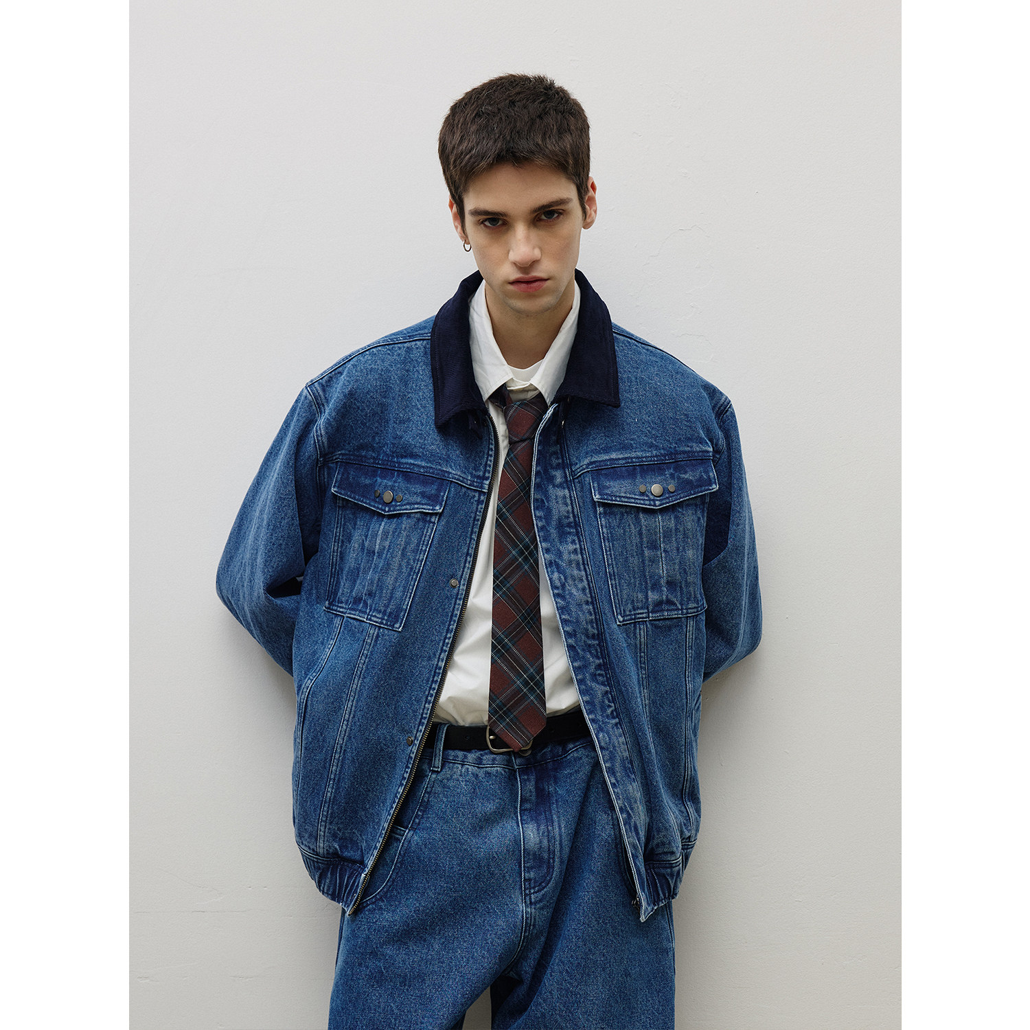 LR MADE 撞色灯芯绒领 复古金属扣 经典双袋牛仔外套夹克