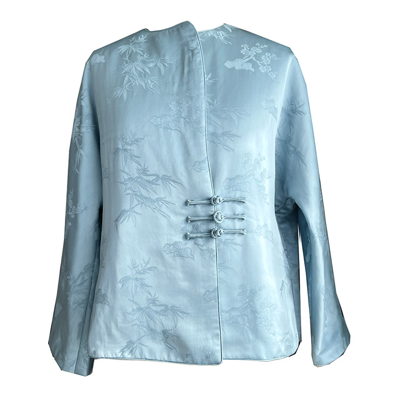 桃知窈窈2023春/梅兰竹 国潮中式醋酸立体花圆领宽松通勤春秋外套