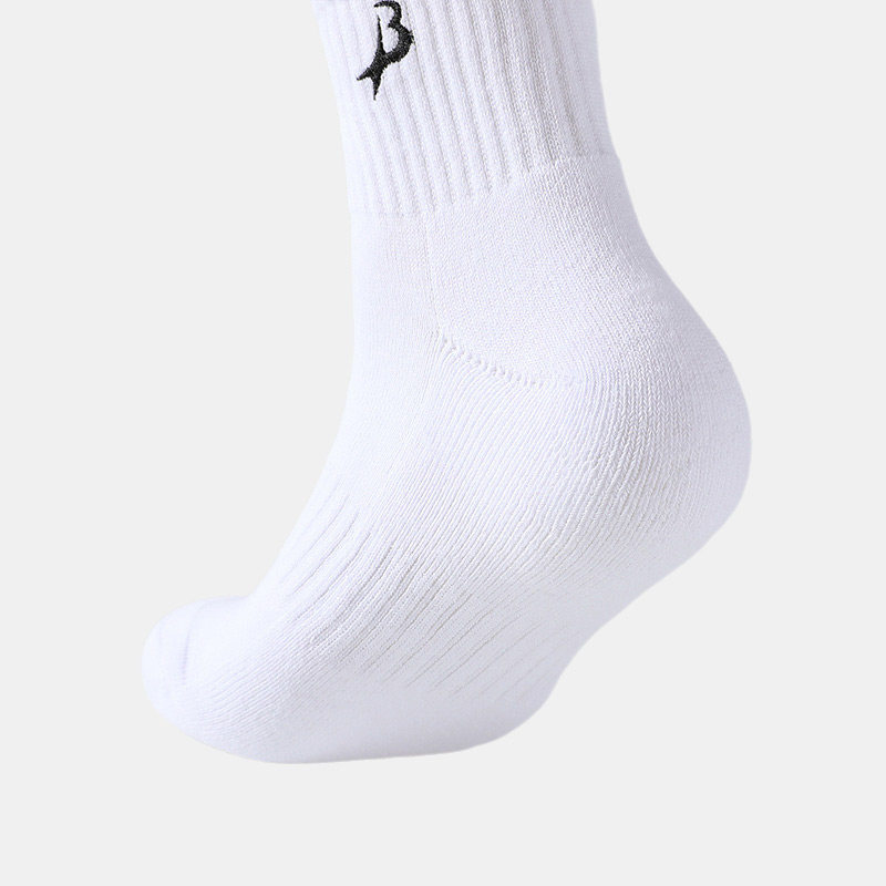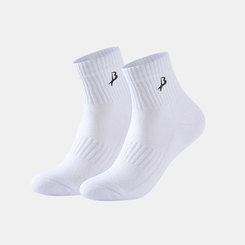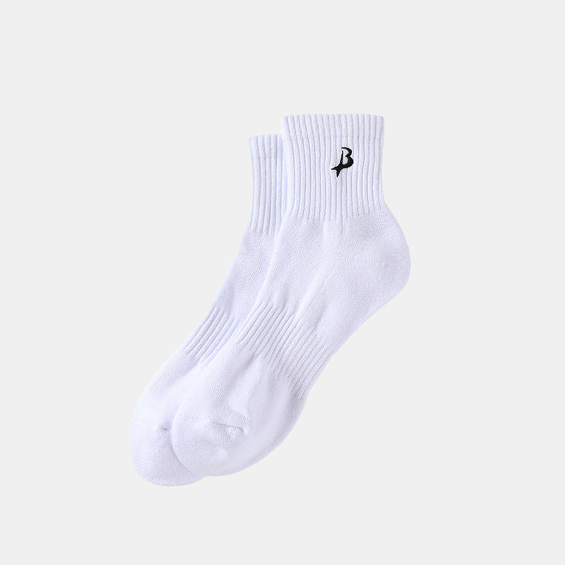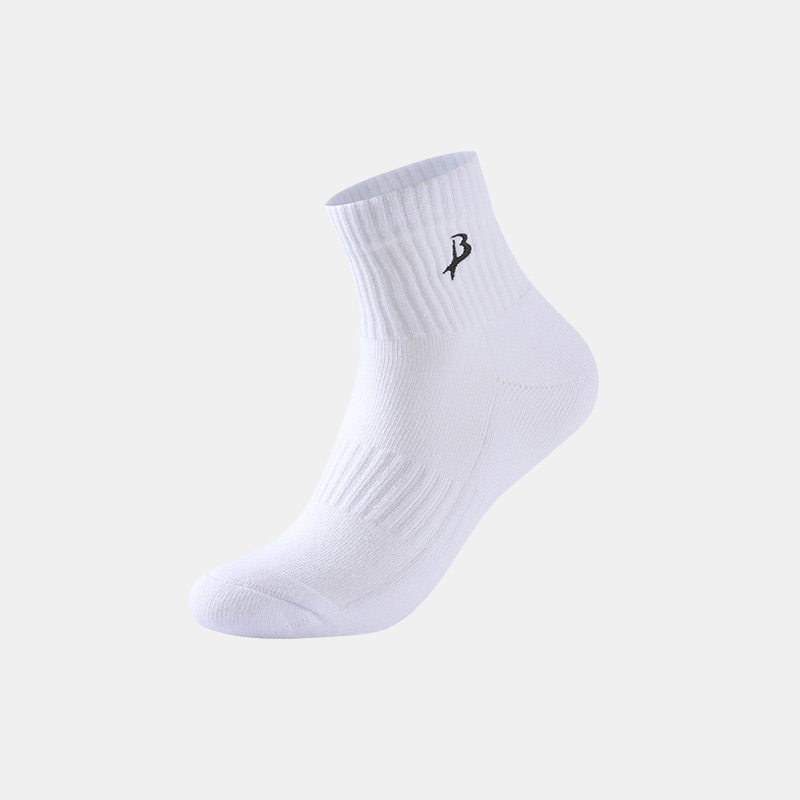 BXWP 袜子男士春秋中筒袜纯棉抗菌防臭吸汗毛巾底薄款白色运动袜