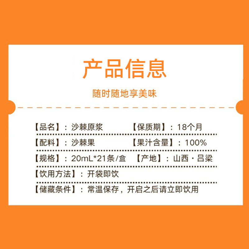 吕梁野山坡沙棘原浆生榨沙棘汁含果油沙棘原汁饮品山西特产20ml