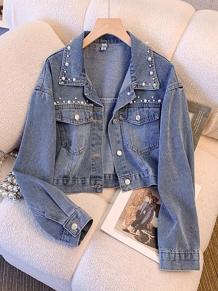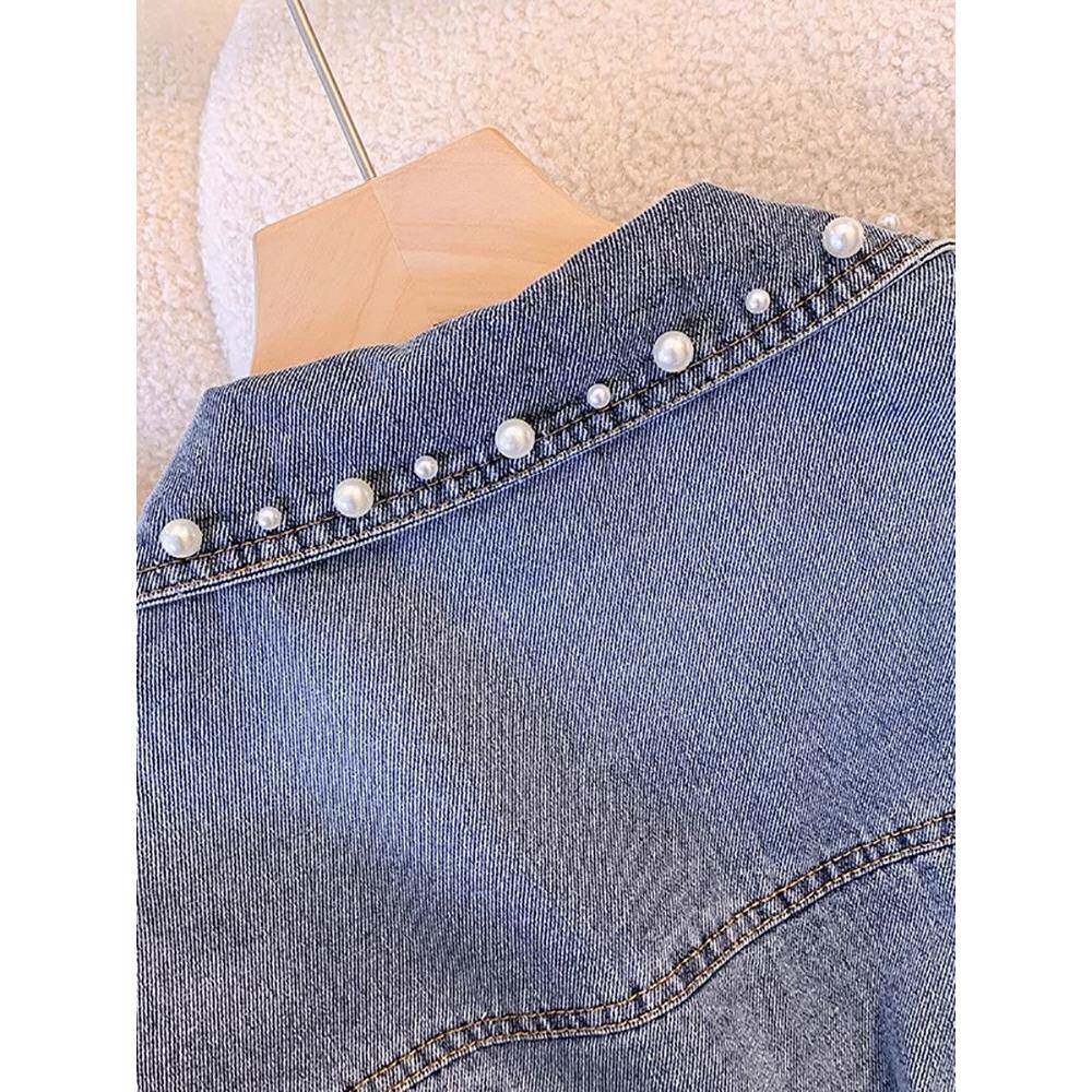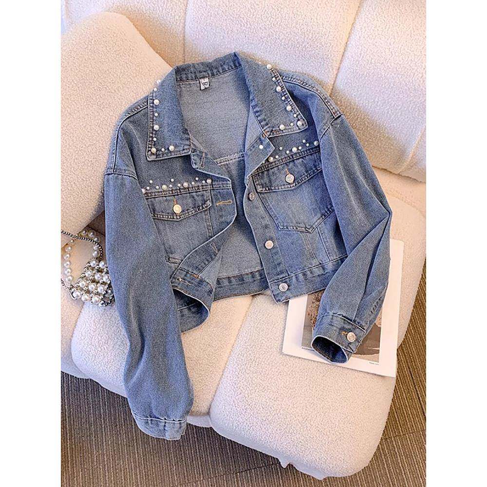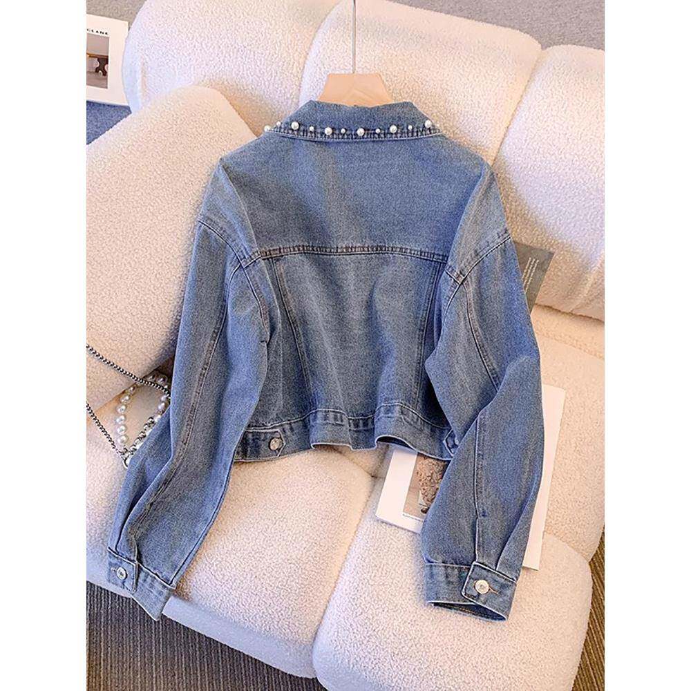 时尚品牌小香式女式牛仔短夹克2025春秋季新款重型串珠小夹克上装
