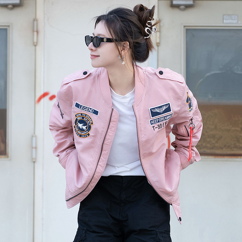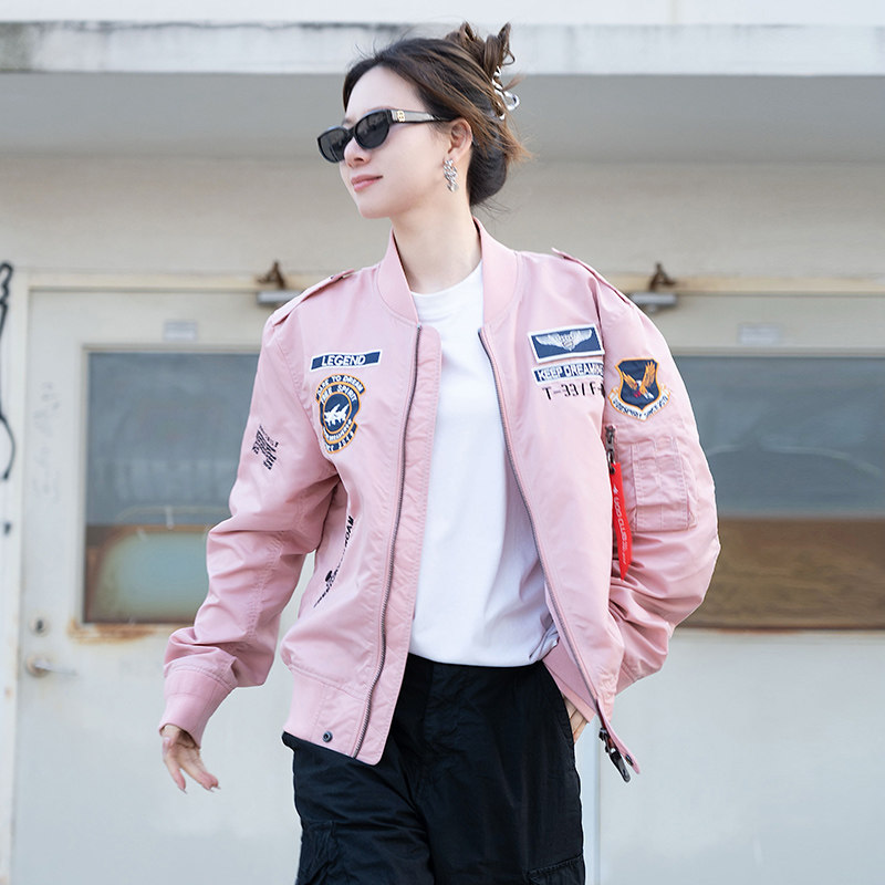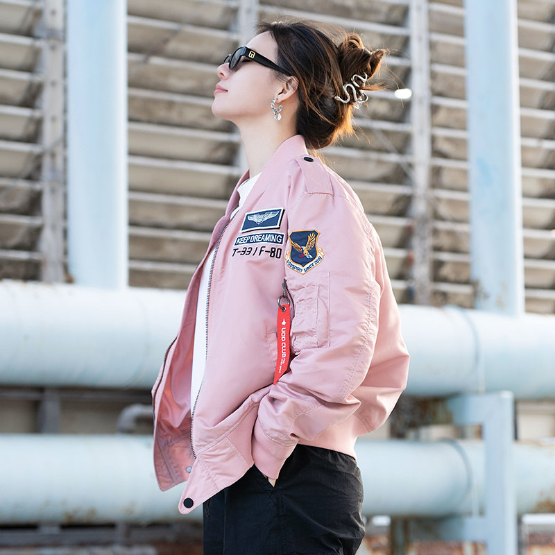 UOD飞行员夹克粉色潮流春秋宽松工装MA-1棒球服潮情侣款休闲外套