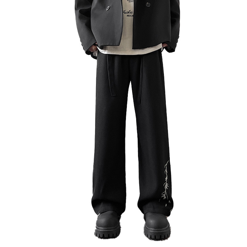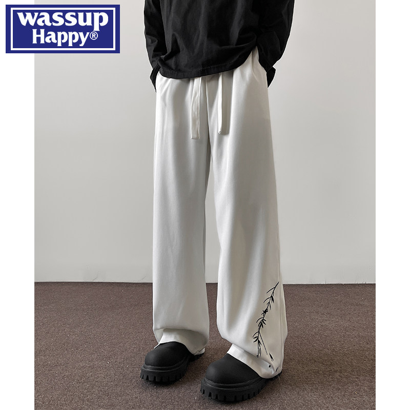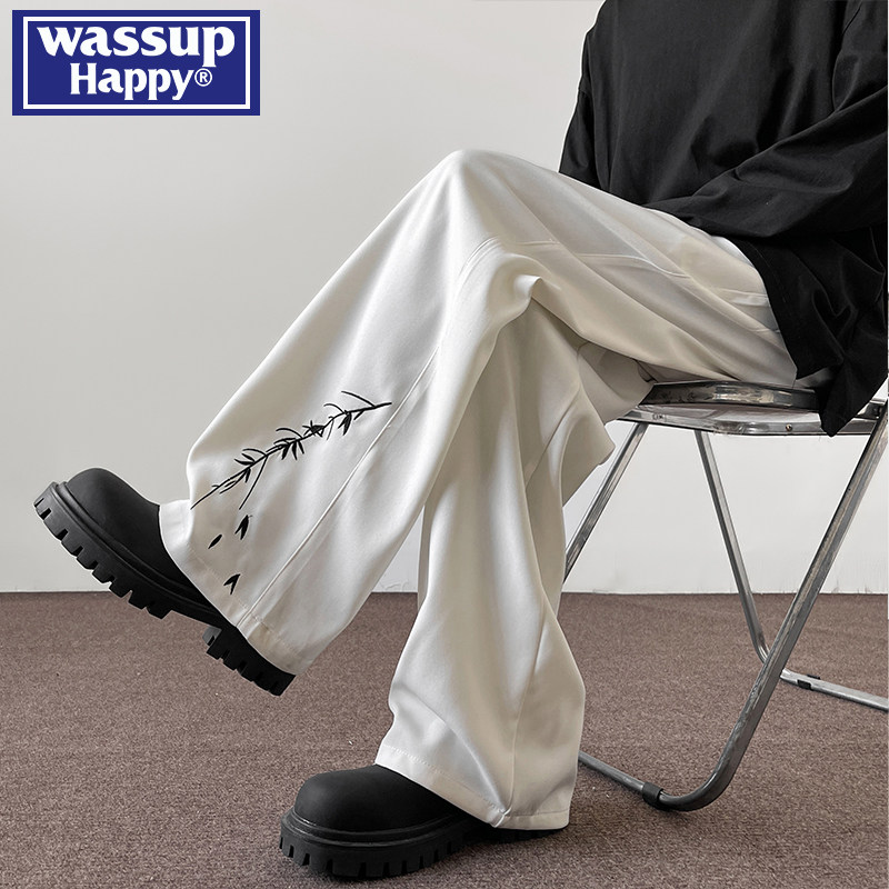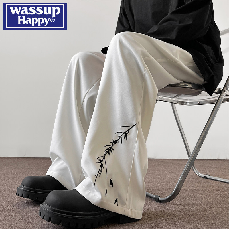 wassup happy新中式国风裤子男士夏季2026新款竹子刺绣直筒长裤子