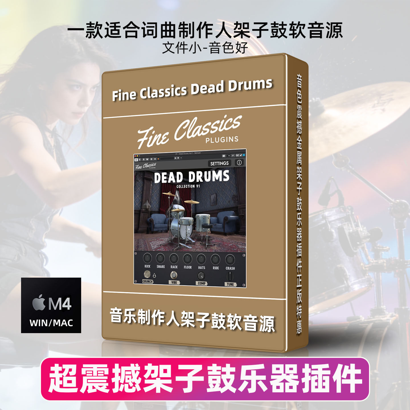 正版FineClassics DeadDrums制作人架子鼓软音源乐器插件Win/Mac