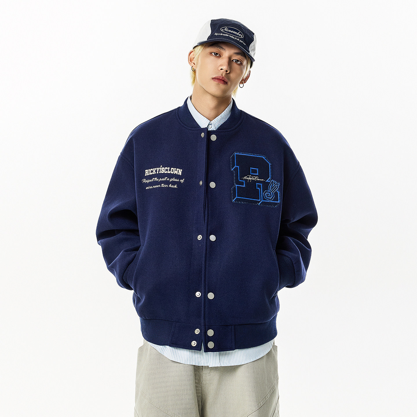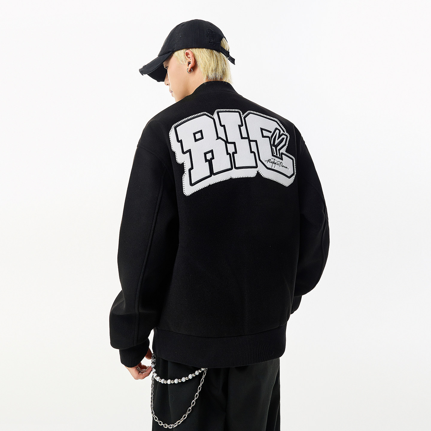 RIC 漩涡兔棒球服男新款春秋宽松夹克贴布绣美式高街情侣外套潮牌